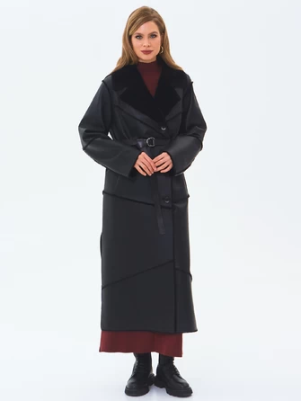 Женское пальто на молнии с норковым воротником премиум класса 2040, черное, размер 48, артикул 63640