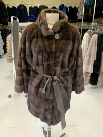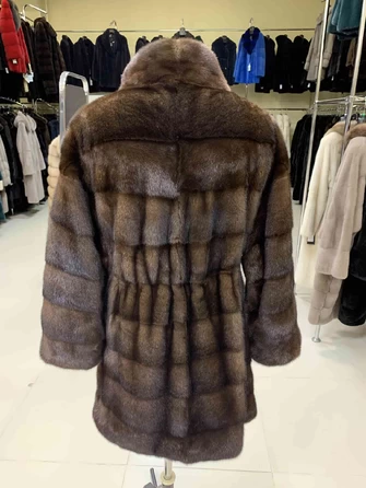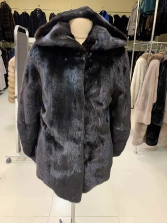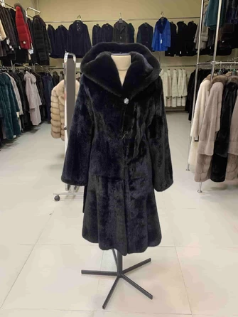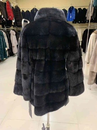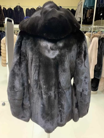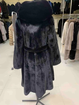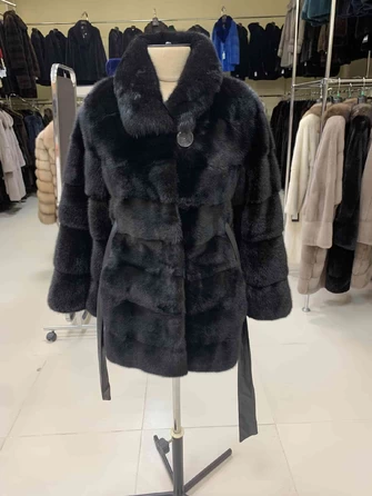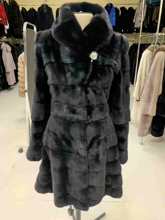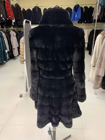 Шуба из меха норки с воротником из меха соболя для женщин Лола(ав), черная, размер 52, артикул 33870