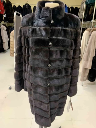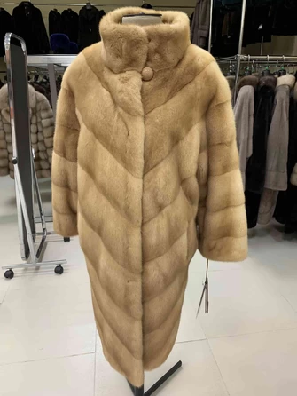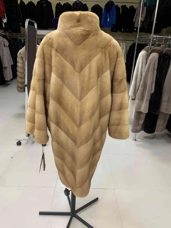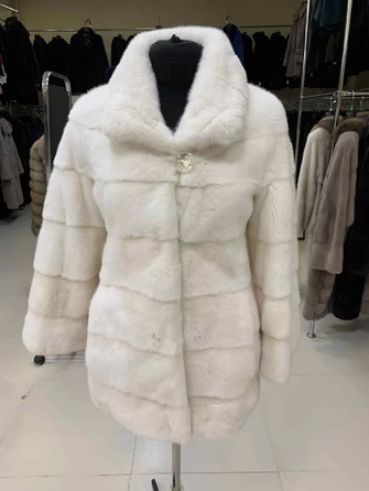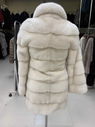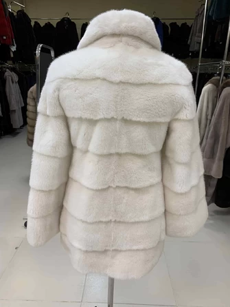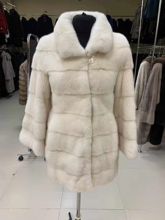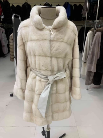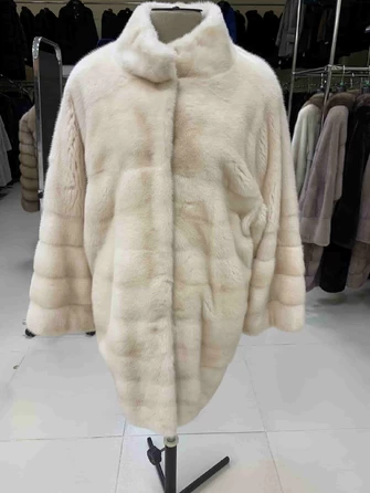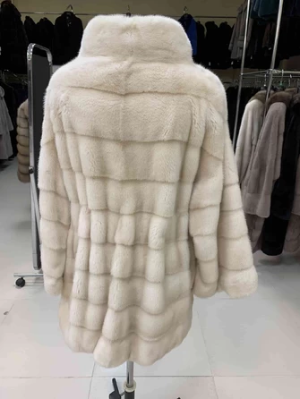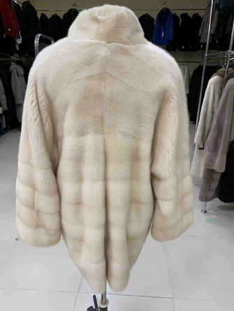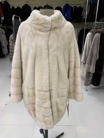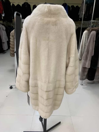Поперечная норковая шуба с воротником стойкой для женщин Ася(в), жемчужная, размер 56, артикул 33760
