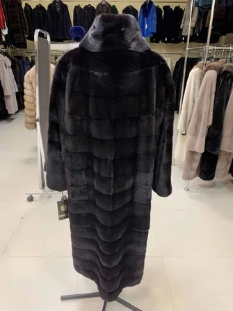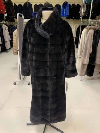 Длинная норковая шуба с воротником стойкой для женщин Елизавета(в), черная, размер 70, артикул 32910