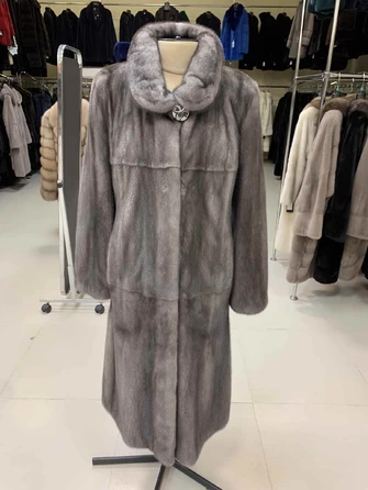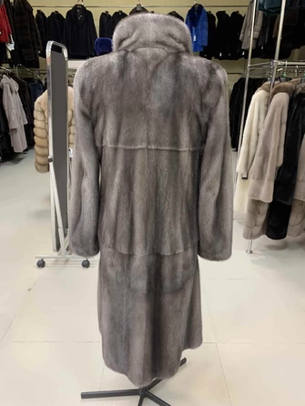 Поперечная норковая шуба с воротником стойкой для женщин Ася(в), жемчужная, размер 56, артикул 33760