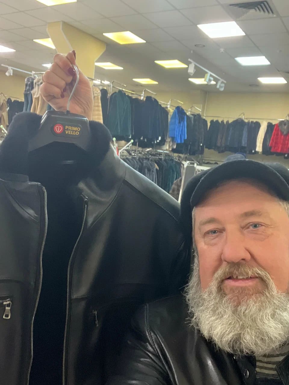 Наконец -то нашли магазин , где смогли найти нормальные кожаные куртки на мужа . У них свой цех по пошиву , теперь только сюда за верхней одеждой