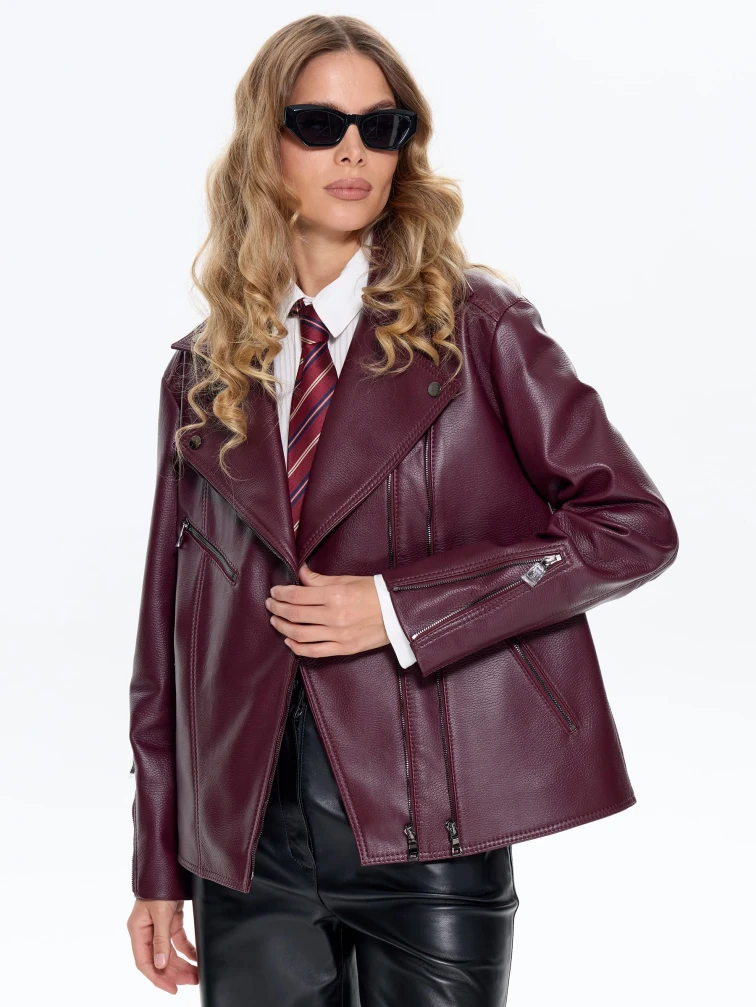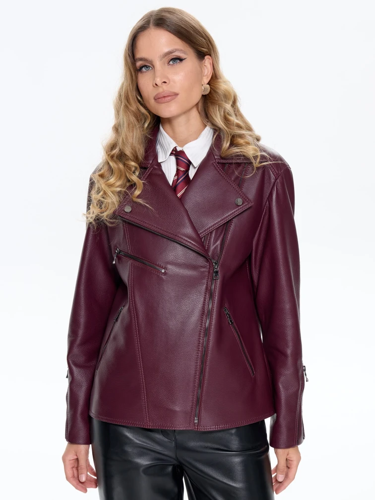Товар бордовая кожаная женская куртка косуха 3047, размер 46, артикул 24770 выполнен из натуральной кожи с застежкой молния. Рассчитан на сезон: весна-лето. Длина изделия 65 см, силуэт прямой.
