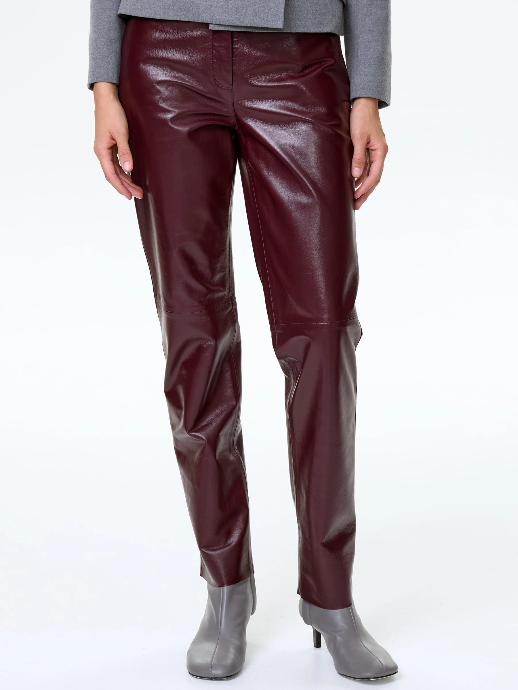 Кожаные зауженные женские брюки 02, бордовые, размер 42, артикул 85490