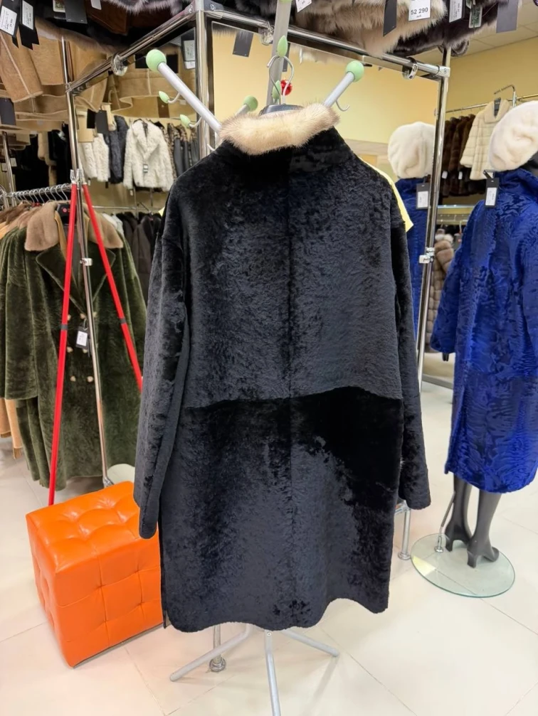 Премиальная дубленка из натурального астрагана с воротником-стойкой: ваш идеальный повседневный образ на холода. Эта невероятно комфортная модель прямого силуэта длиной 95 см согреет с особым шиком. Спущенный рукав и мягкая отделка нокой карманов добавляют расслабленной элегантности. Стилисты рекомендуют носить ее с объемным свитером, прямыми джинсами и грубыми ботинками для богемного образа или с платьем-миди и высокими сапогами для утонченного контраста. Застежка-молния и практичная длина делают эту дубленку не только стильной, но и функциональной основой зимнего гардероба.