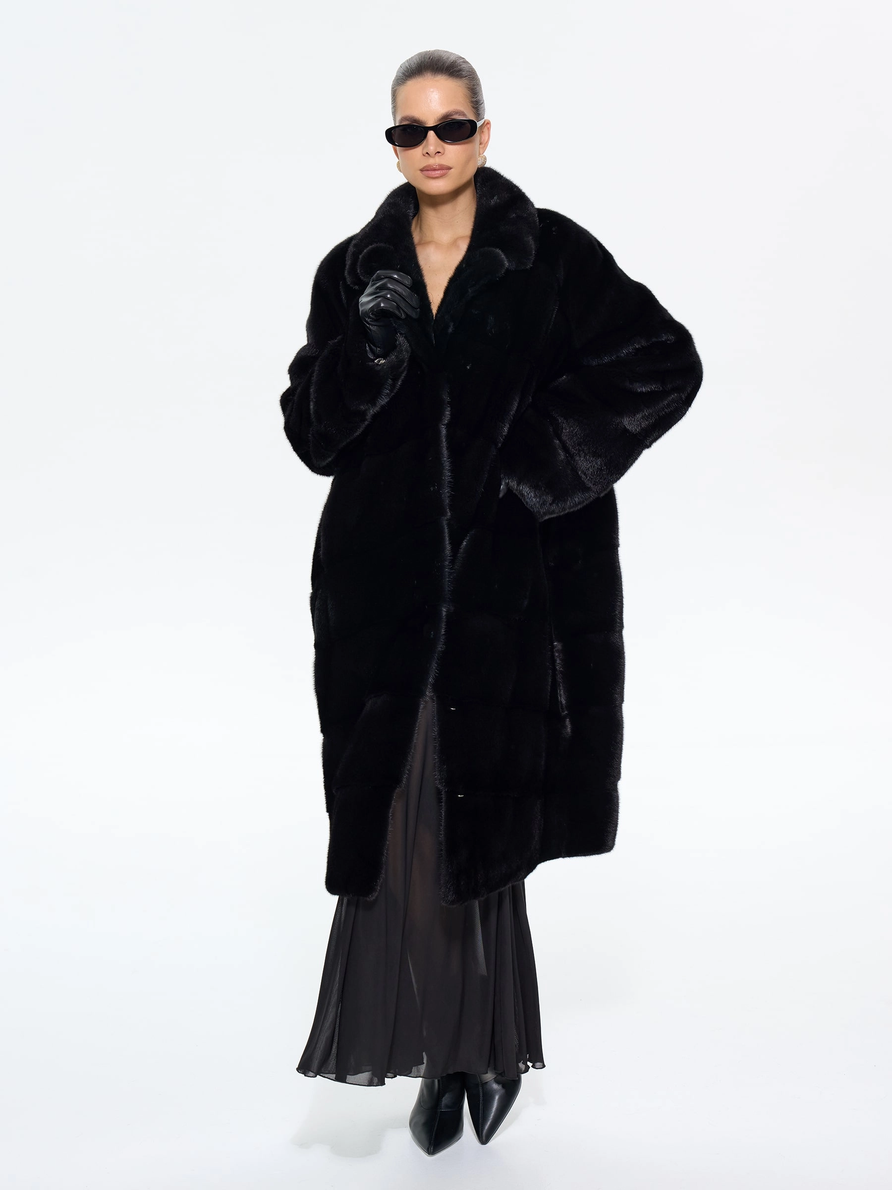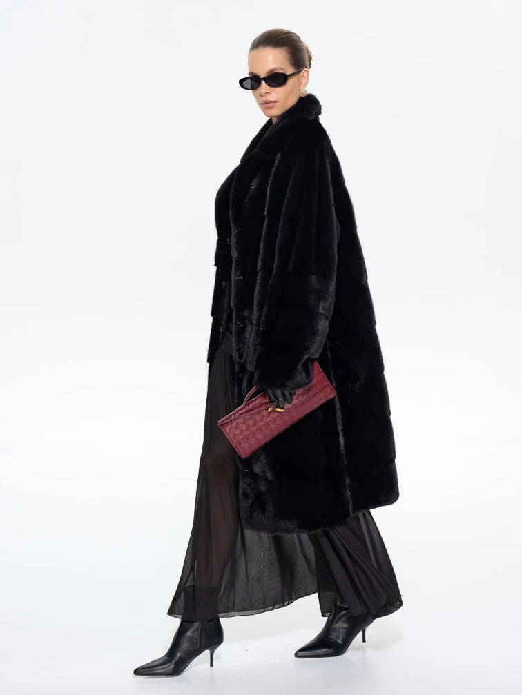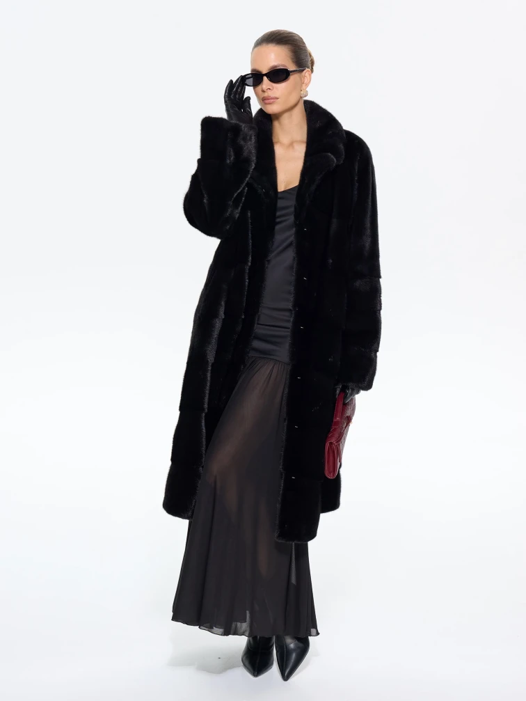 Товар длинная женская норковая шуба м-102- 1901, черная, размер 52, артикул 65400 выполнен из мех норки с застежкой клипсы. Рассчитан на сезон: зима. Длина изделия 110 см, силуэт прямой.