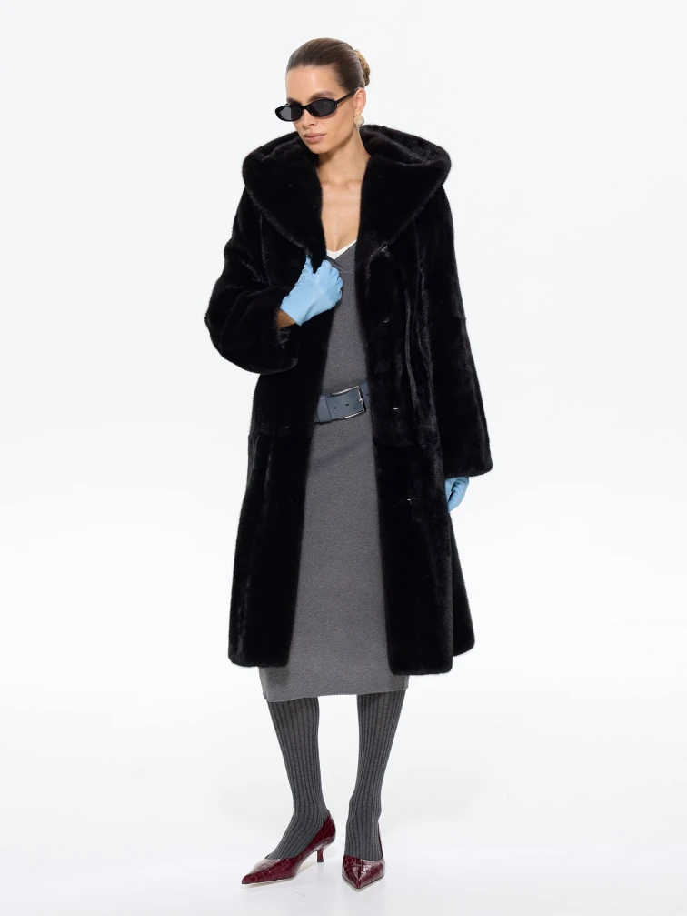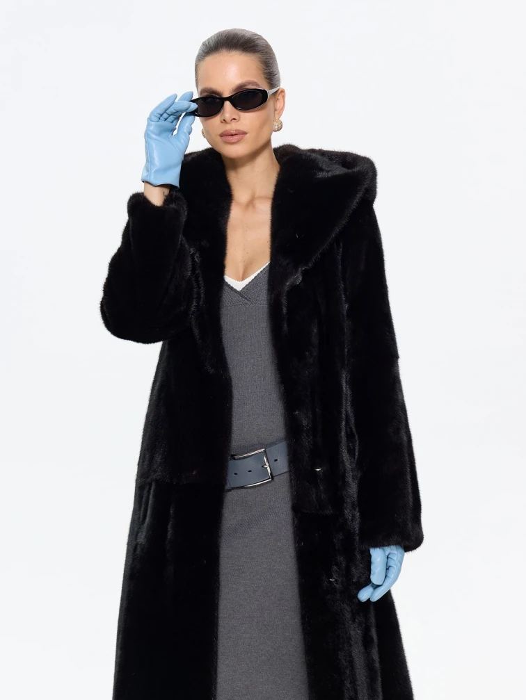 Эту классическую шубу с безупречной посадкой изготовили из густого шелковистого меха норки с идеально равномерным ворсом. Элегантная длина до середины бедер создает стройный силуэт. Приталенный крой мягко подчеркивает талию, сохраняя женственные пропорции, а глубокий капюшон надежно защищает от непогоды. Лаконичный дизайн без лишних деталей подчеркивает благородство натурального меха. Удобные клипсы-застежки легко фиксируются и берегут мех. MANZARI — мех, который говорит о вашем вкусе без слов.