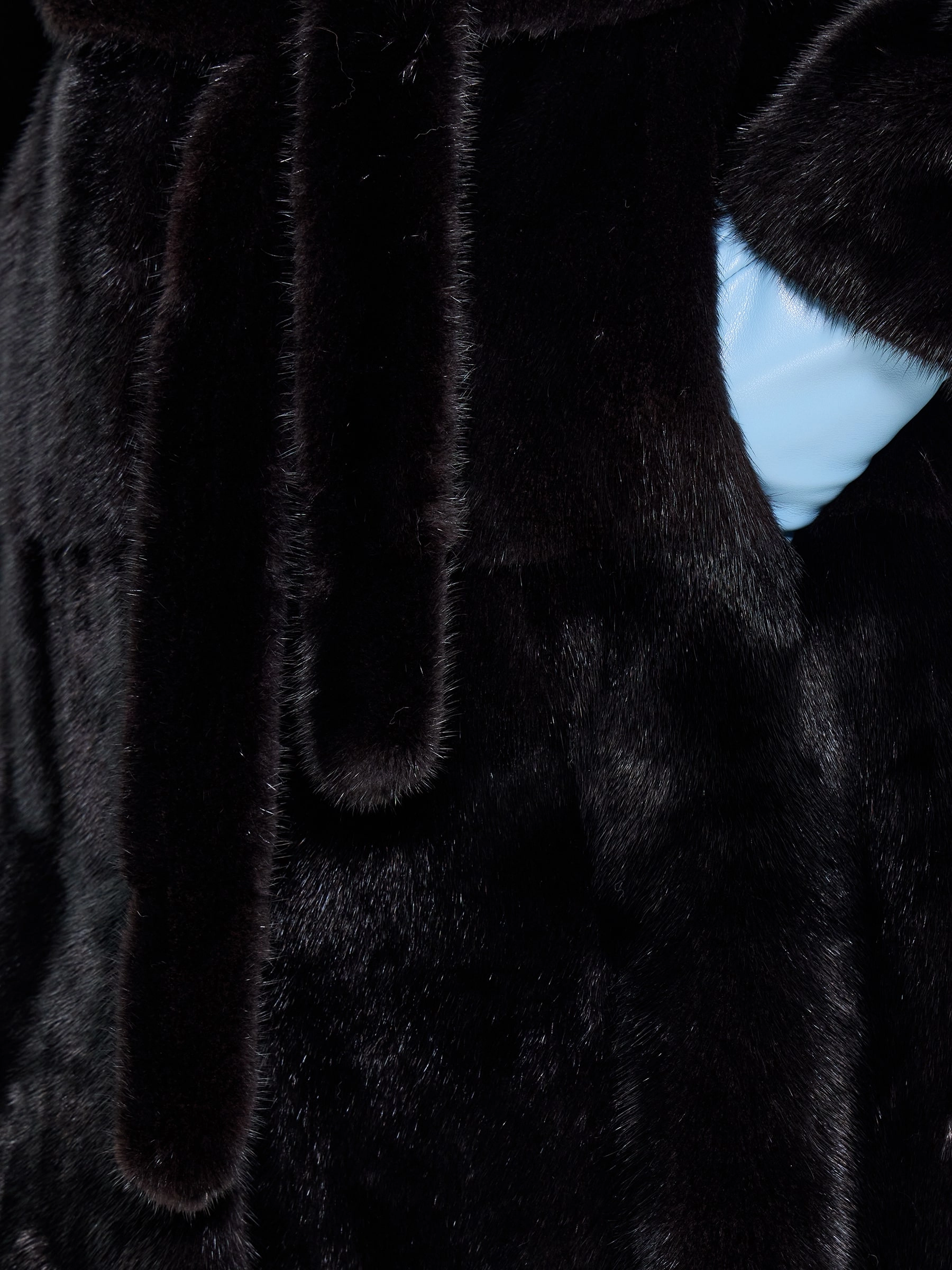 Товар длинная женская норковая шуба manzari м069, черная, размер 40, артикул 34250 выполнен из норка с застежкой клипсы. Рассчитан на сезон: зима. Длина изделия 110 см, силуэт приталенный .