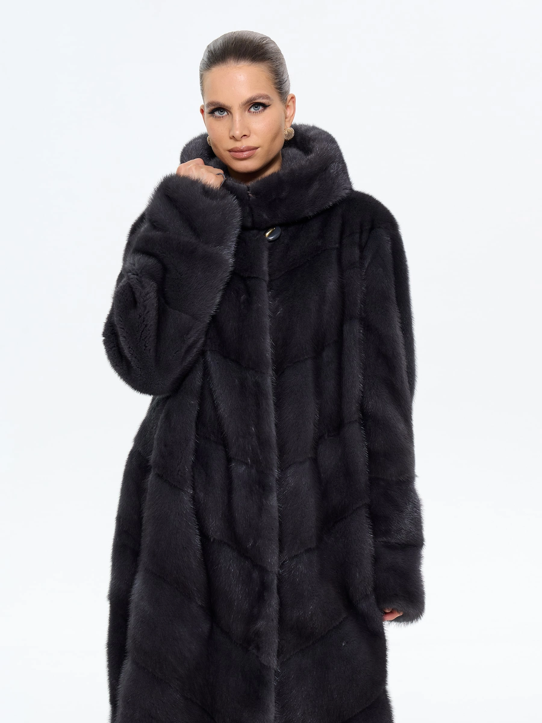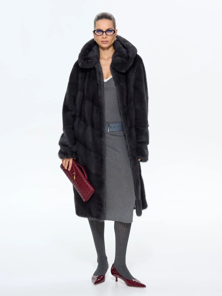 Классическая шуба из меха норки с капюшоном в насыщенном цвете «графит» — это воплощение современной роскоши. Модель длиной 100 см выполнена в прямом крое с эффектной диагональной раскладкой меха, что создает изящную игру света на поверхности. Практичный глубокий капюшон, регулируемые по длине рукава и удобные карманы делают ее не только стильной, но и функциональной. Совет от стилистов: эта шуба станет главной героиней вашего гардероба. Для повседневного образа сочетайте ее с объемным свитером, узкими джинсами и ботильонами на каблуке, а для вечернего выхода — набросьте на элегантное платье-футляр и дополните лакированными аксессуарами. Эта вещь дарит не только тепло, но и неповторимое ощущение уверенности, подчеркивая ваш безупречный вкус в любой ситуации.
