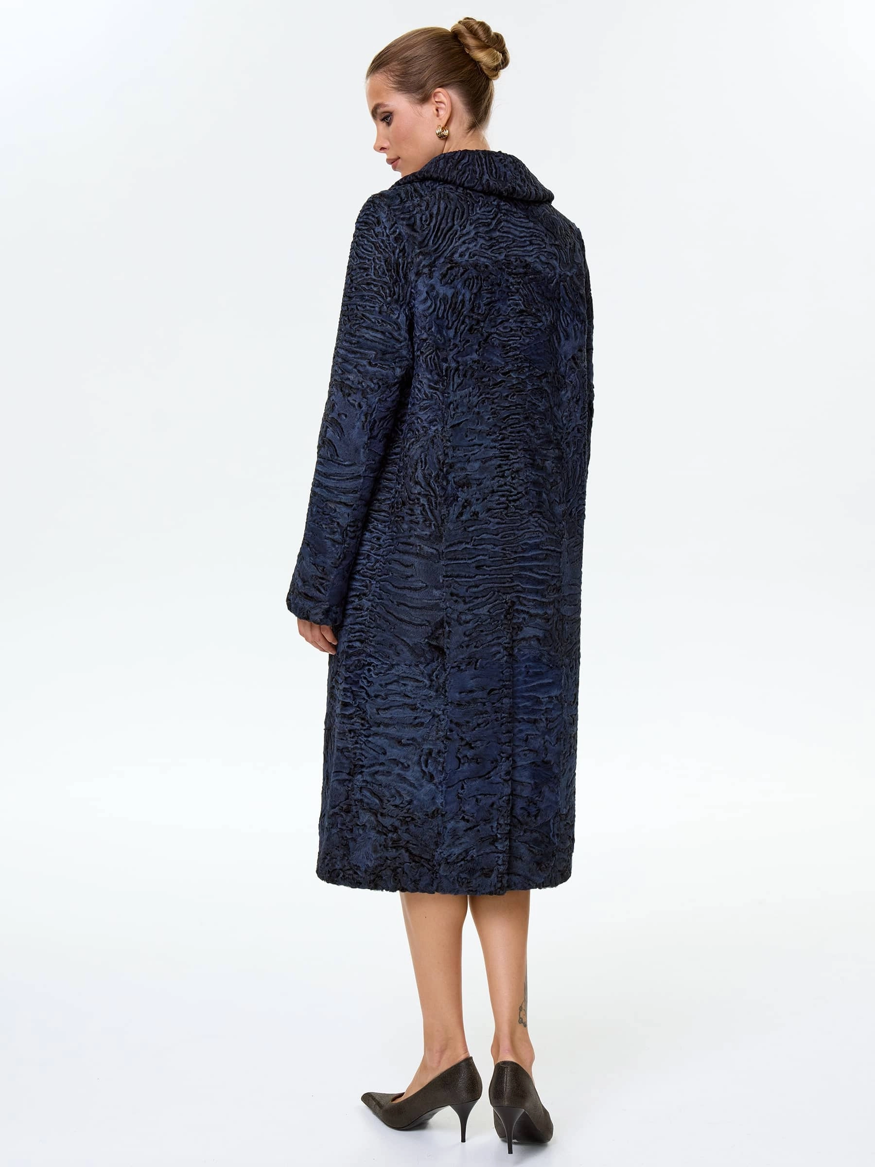 Длинная женская шуба из меха каракульчи премиум класса Лола(ав), синяя, размер 48, артикул 34010