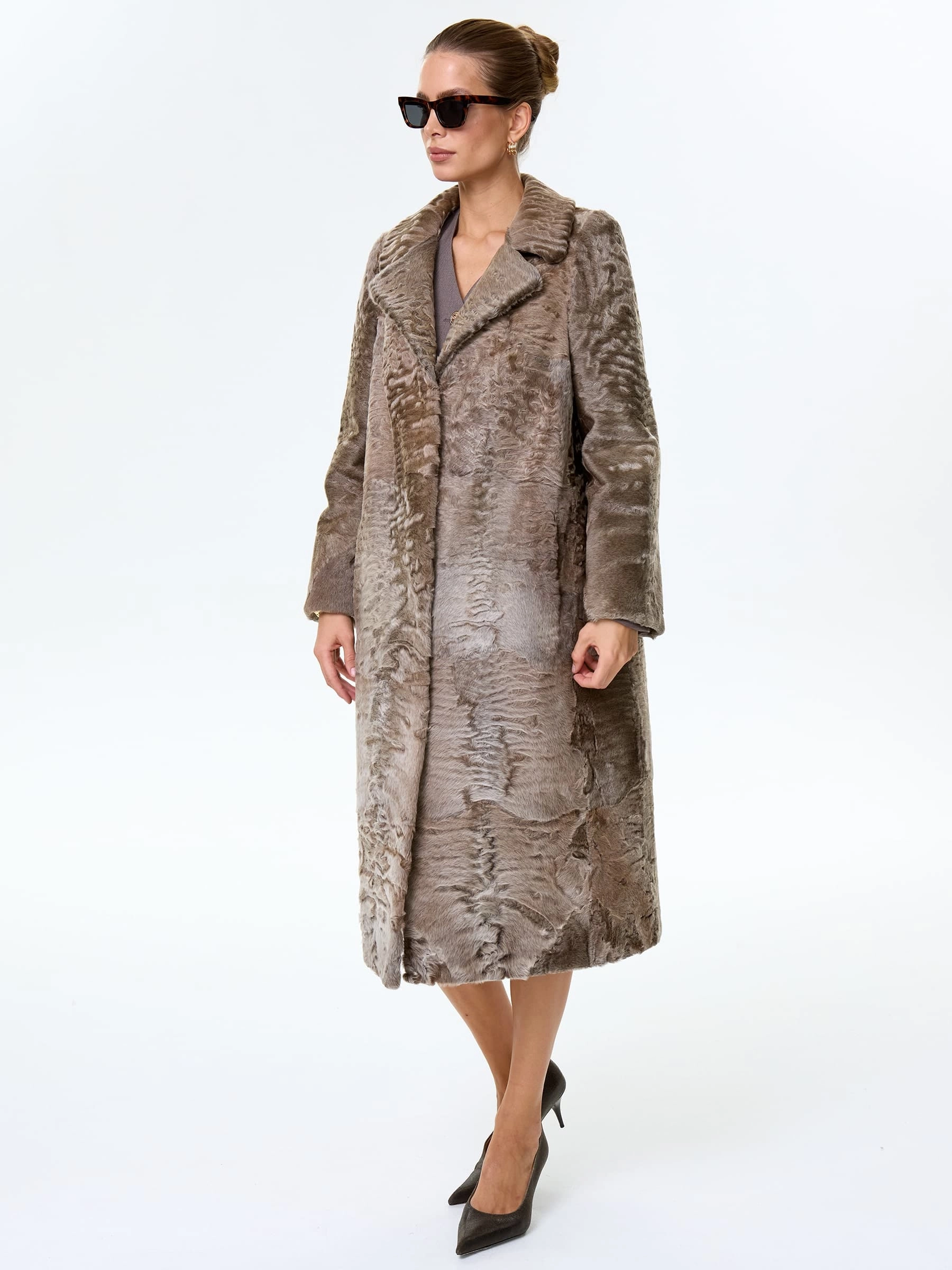 Длинная женская шуба из меха каракульчи премиум класса Лола(ав), светло-коричневая, размер 50, артикул 33990