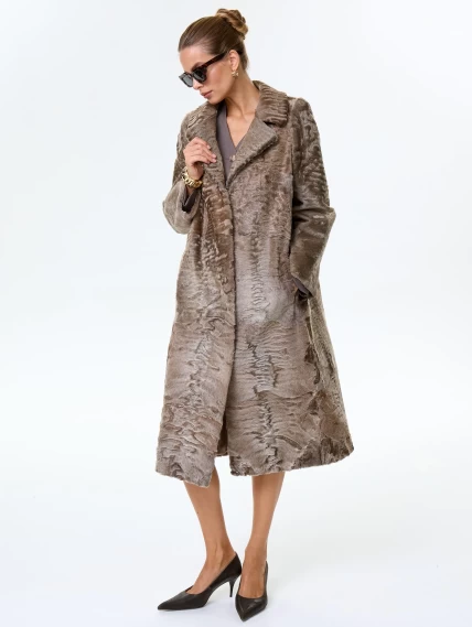 Длинное пальто из меха каракульчи для женщин премиум класса Лола(ав), светло-коричневое, размер 50, артикул 33960