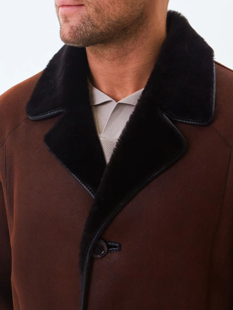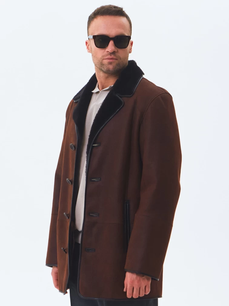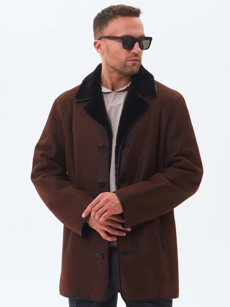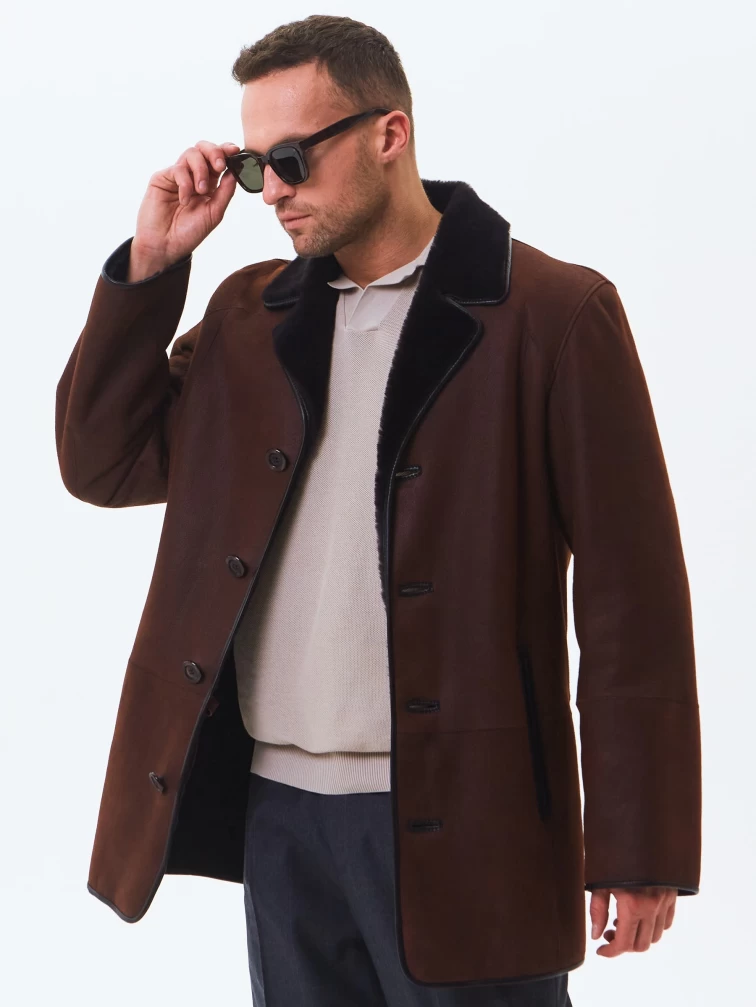 Классическая мужская дубленка 135, виски, размер 48, артикул 70720