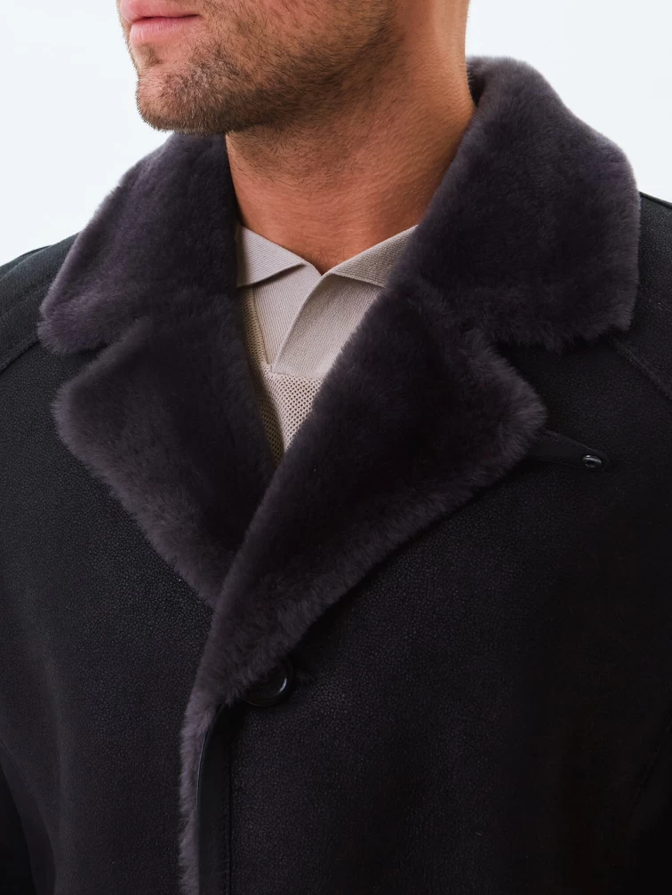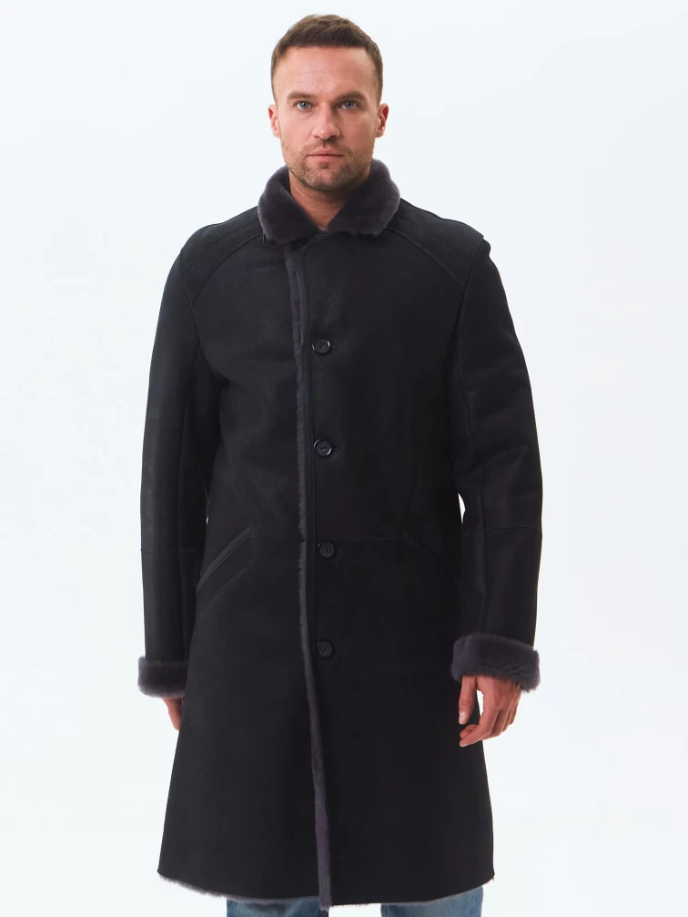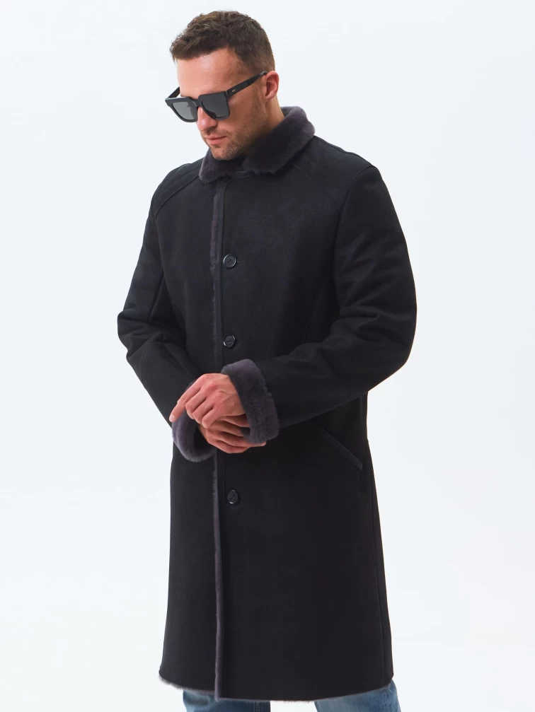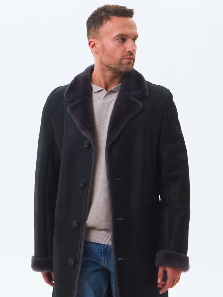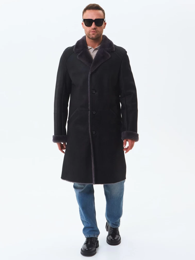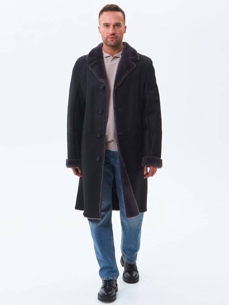 Длинная классическая мужская дубленка премиум класса 407, черная, размер 50, артикул 70440