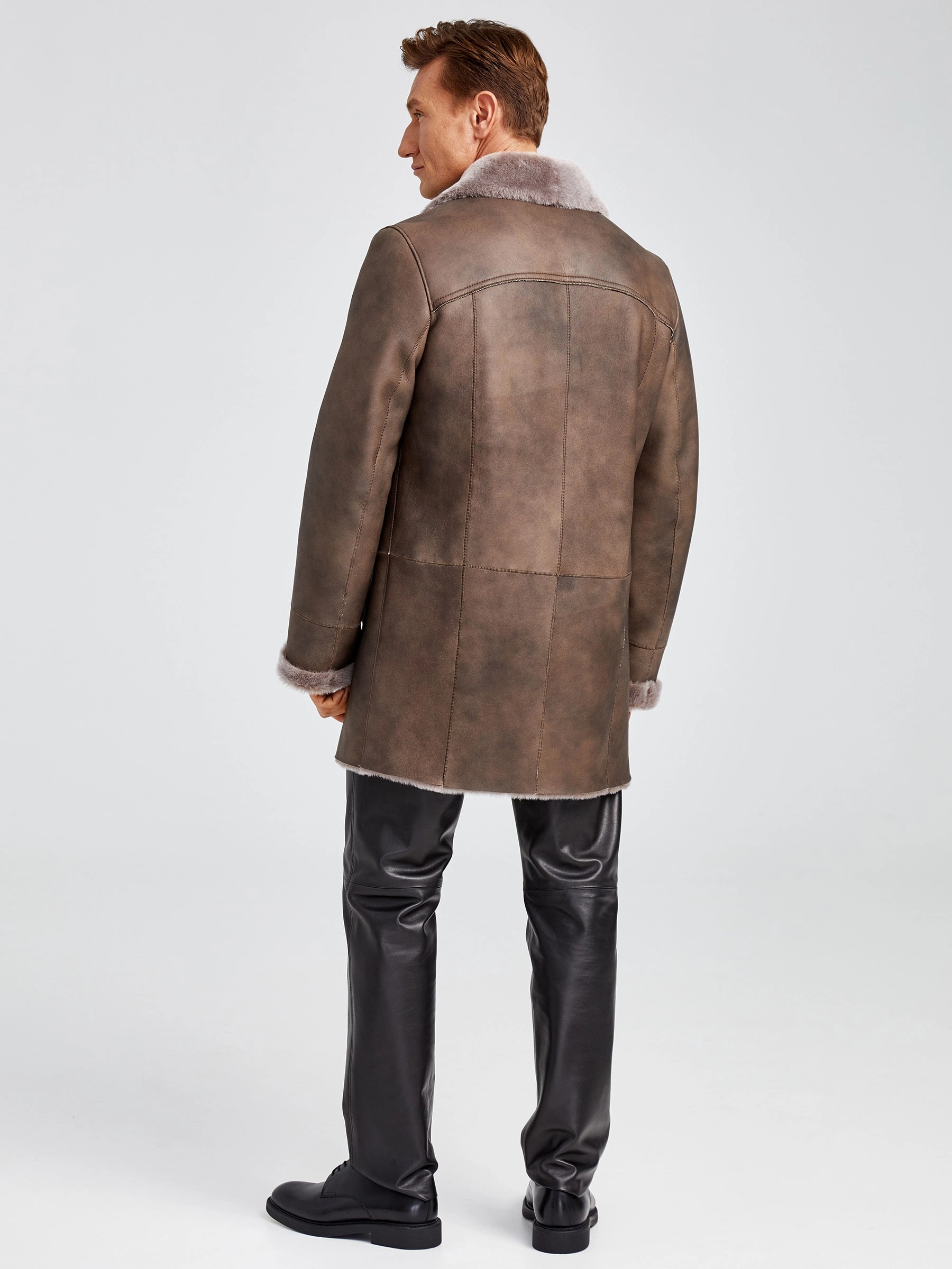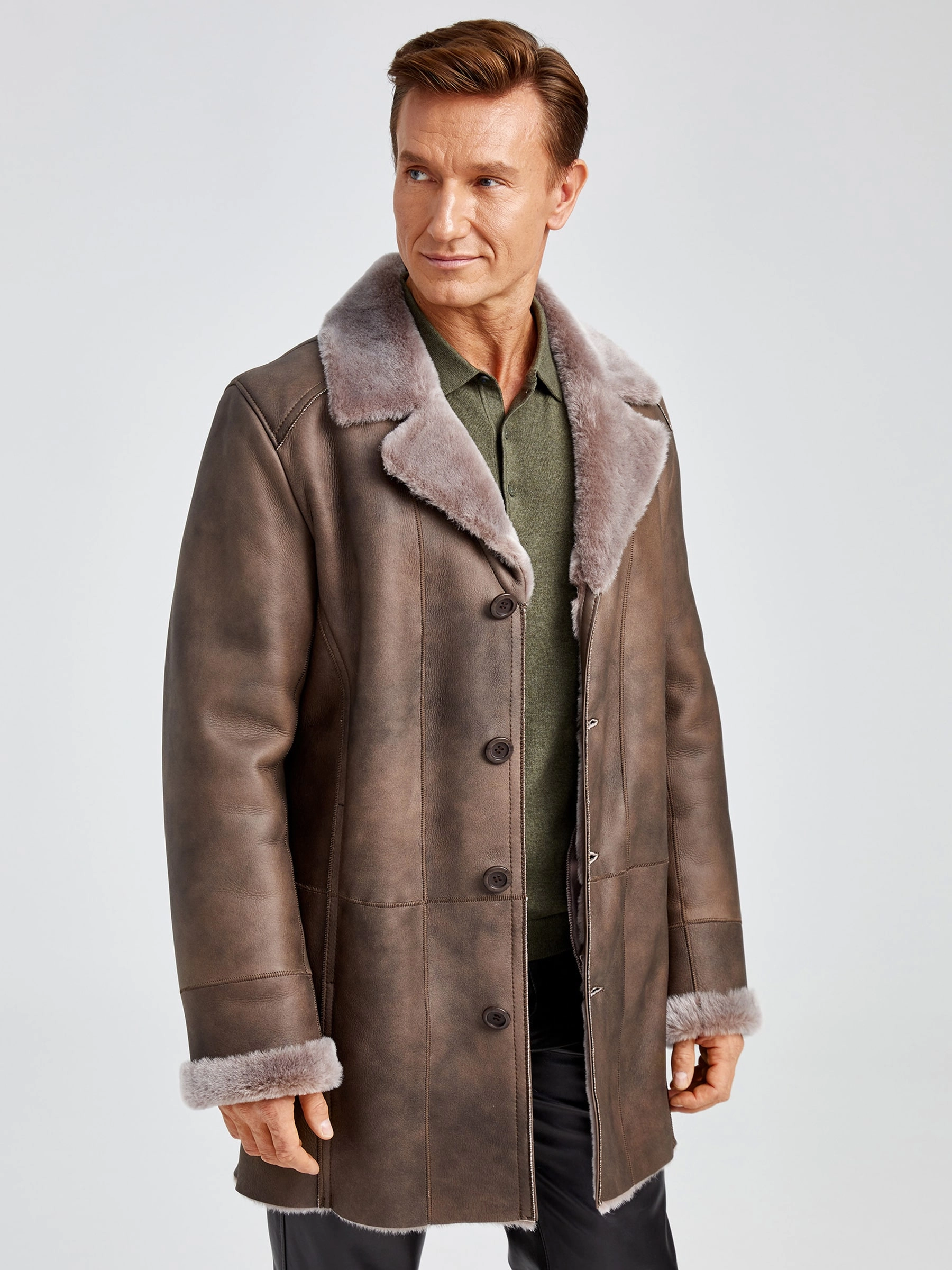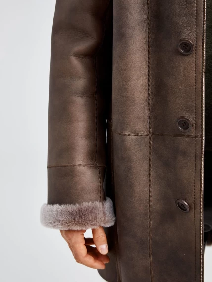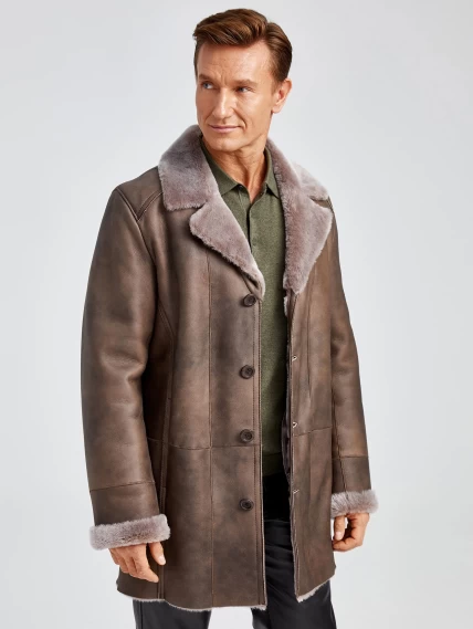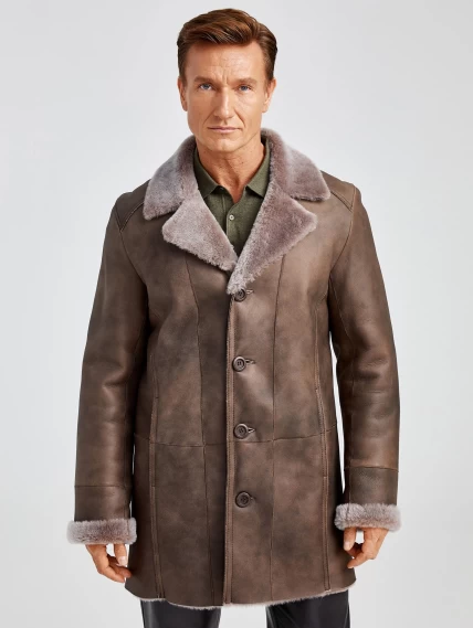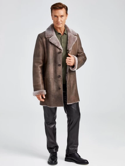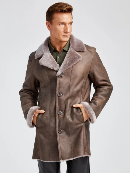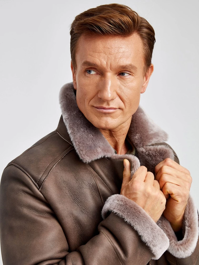 Дубленка классическая мужская 412, серо-коричневая, размер 50, артикул 70682