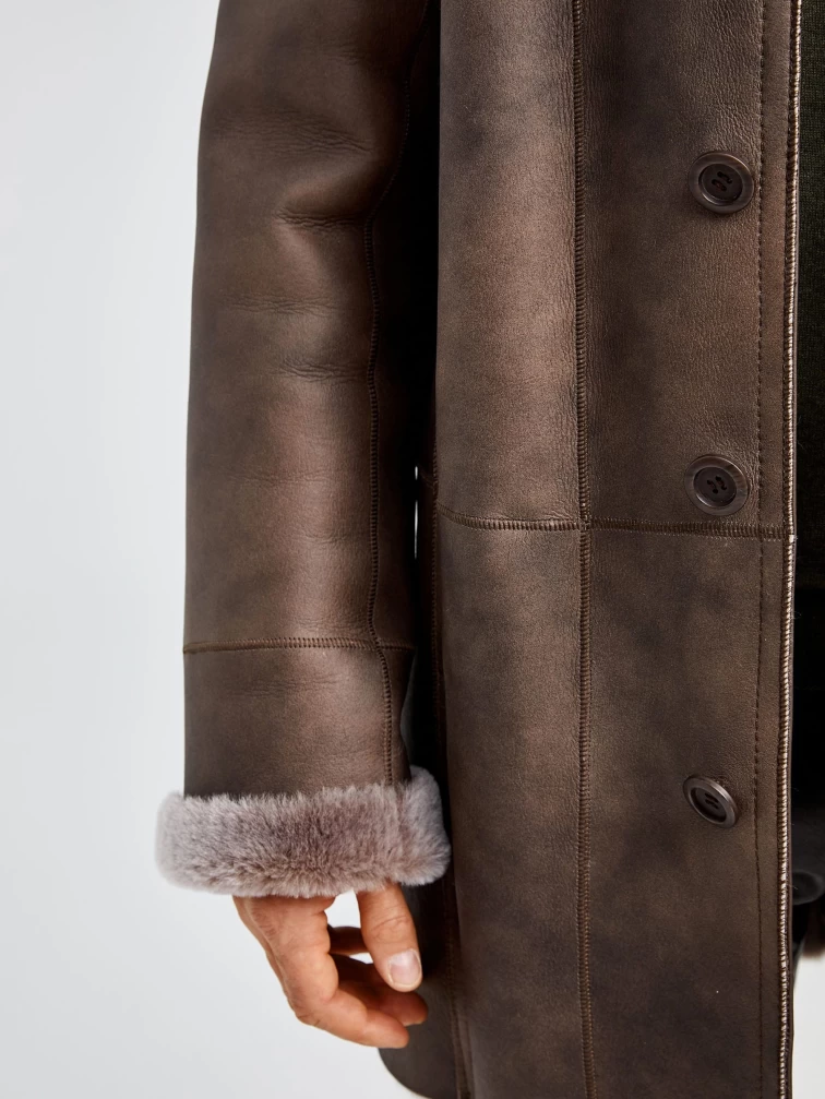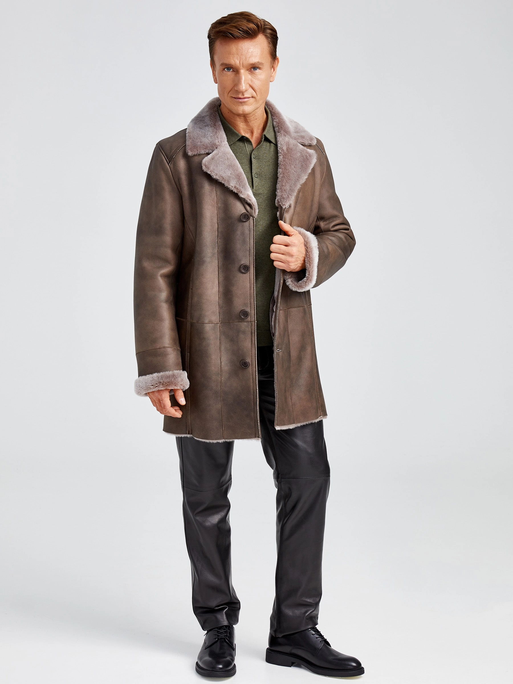 Современная мужская дублёнка классической длины. Удобные карманы для ключей и документов. Новейшее защитное покрытие. Особо прочные нитки. Приятный на ощупь, максимально густой мех мериносной породы овец. Идеальные швы, продуманные и удобные элементы. Аккуратность во всей работе. Чёткая и очень удобная посадка по фигуре. Великолепная свобода движений. Абсолютный комфорт.