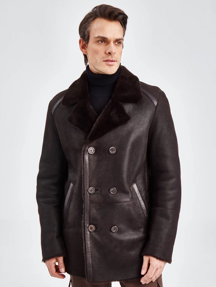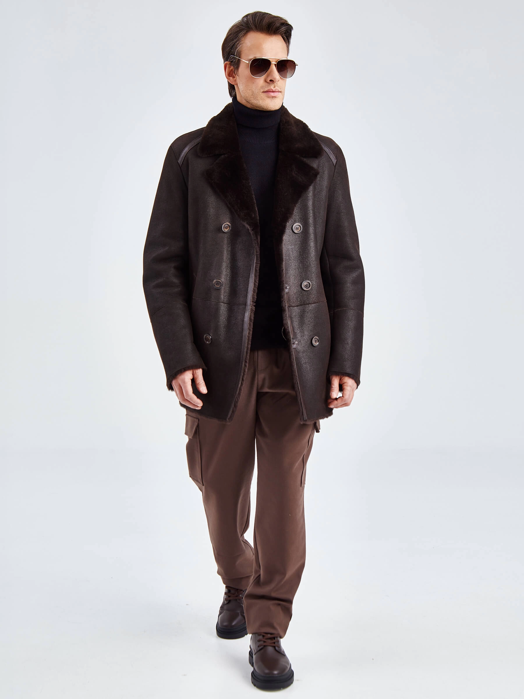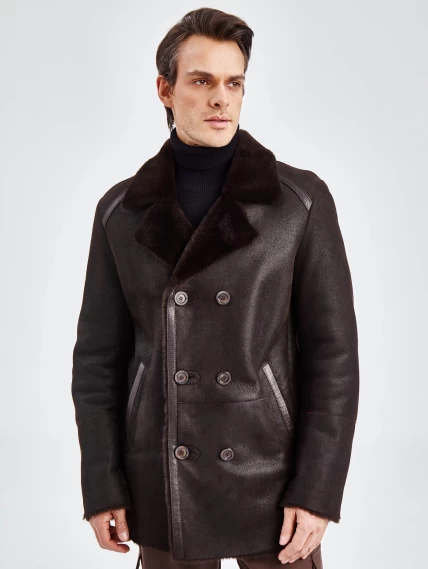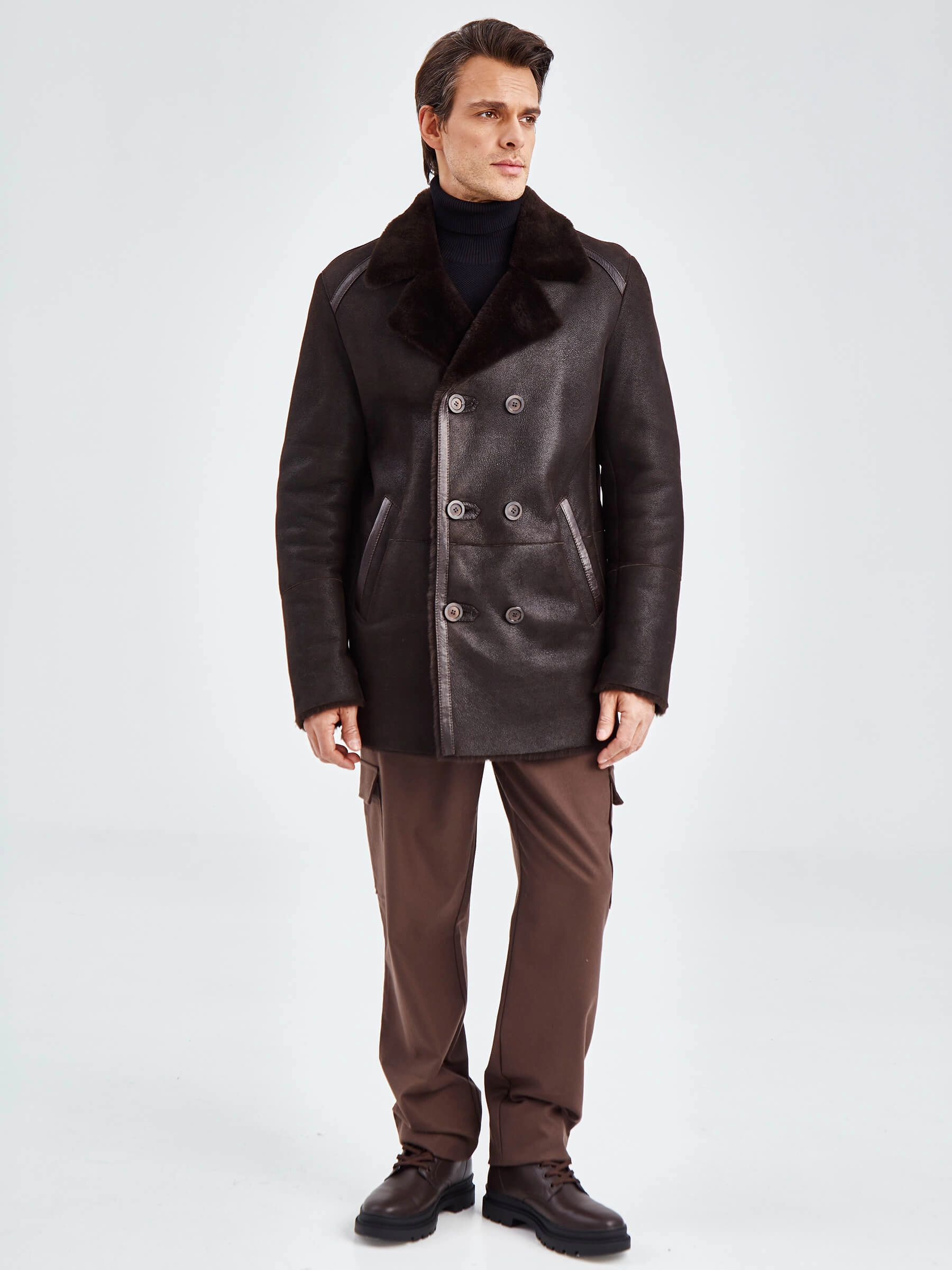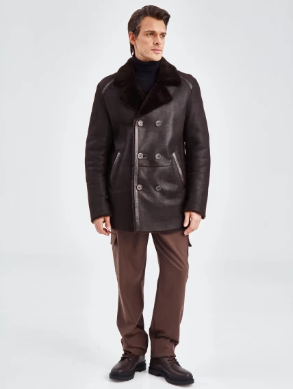 Дубленка двубортная классическая мужская 422, коричневая, размер 58, артикул 70500
