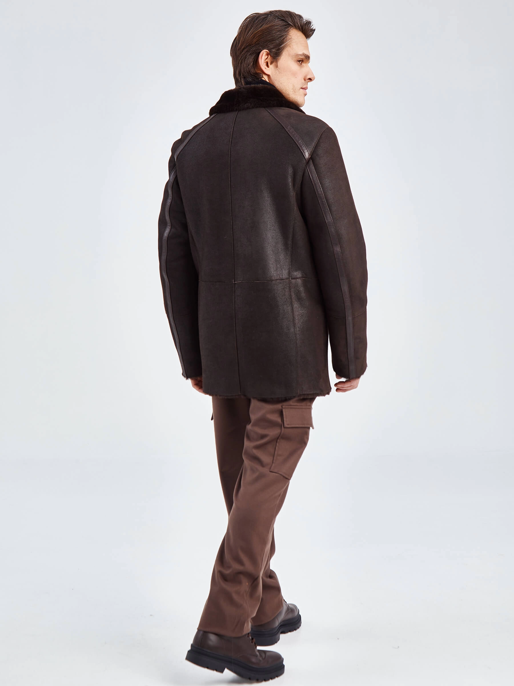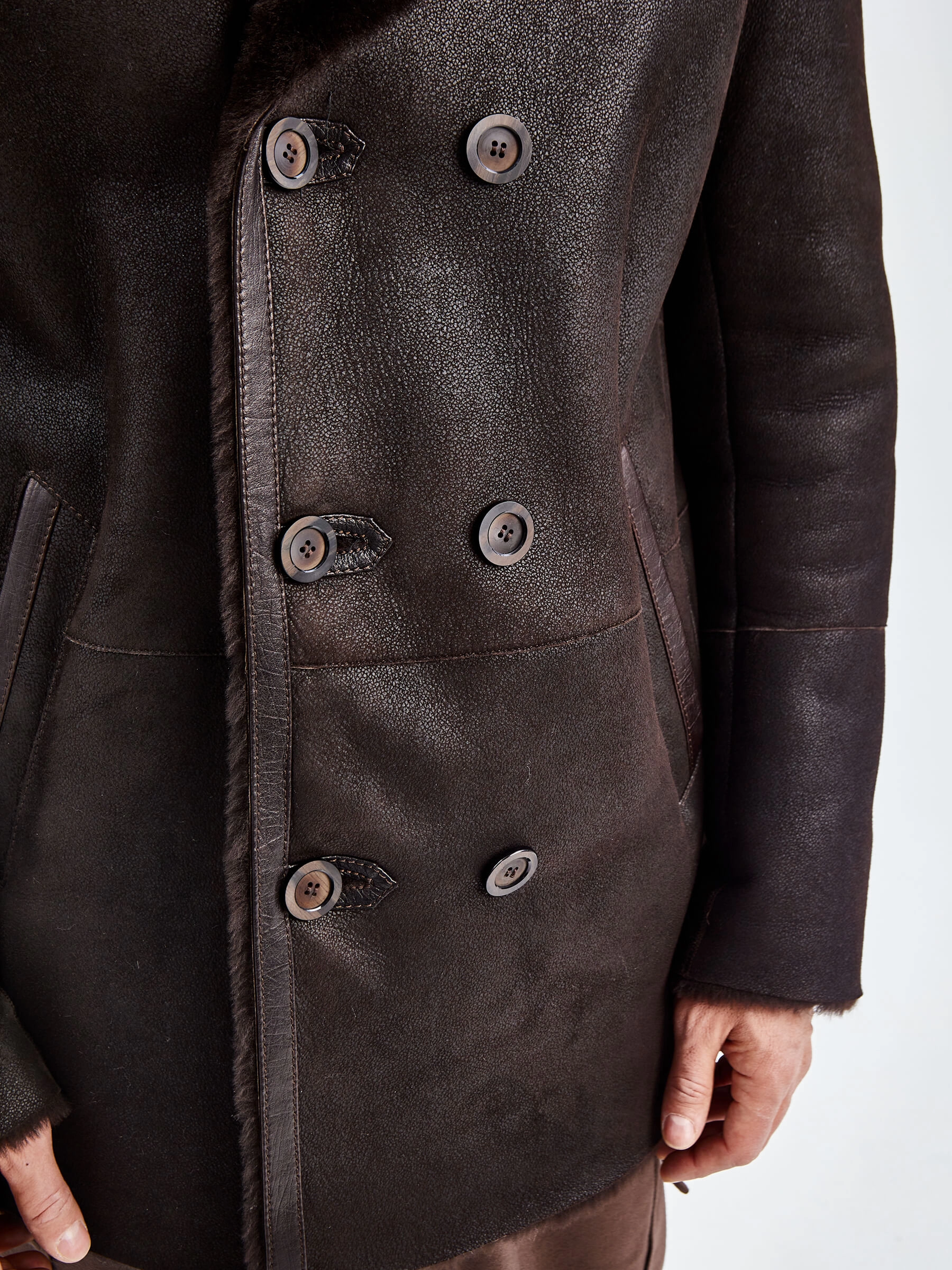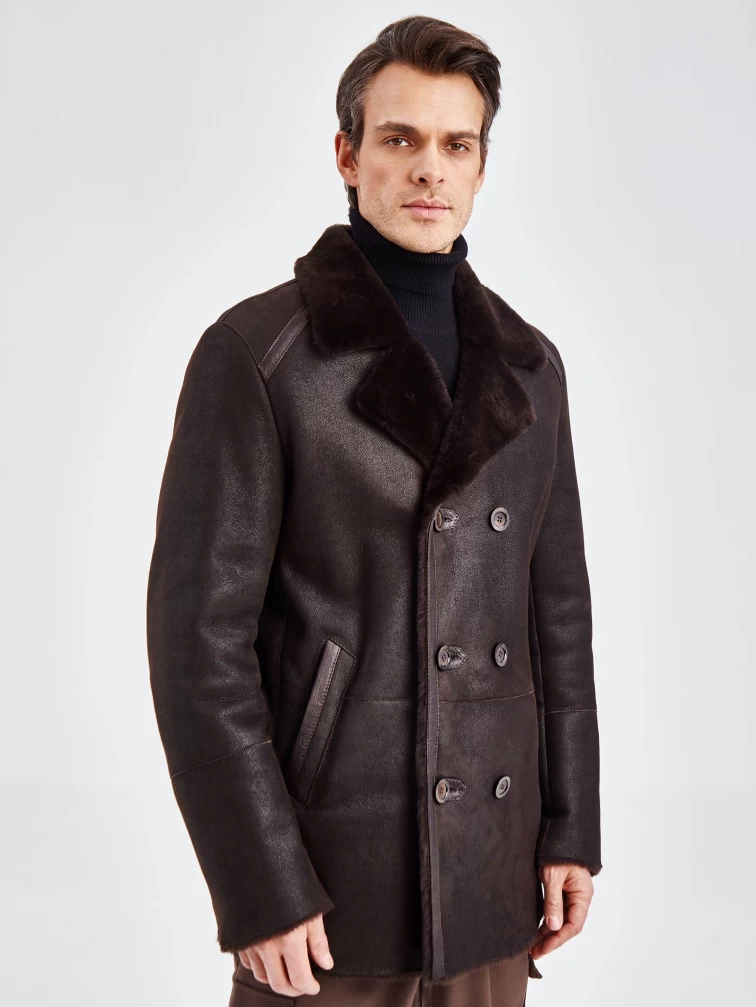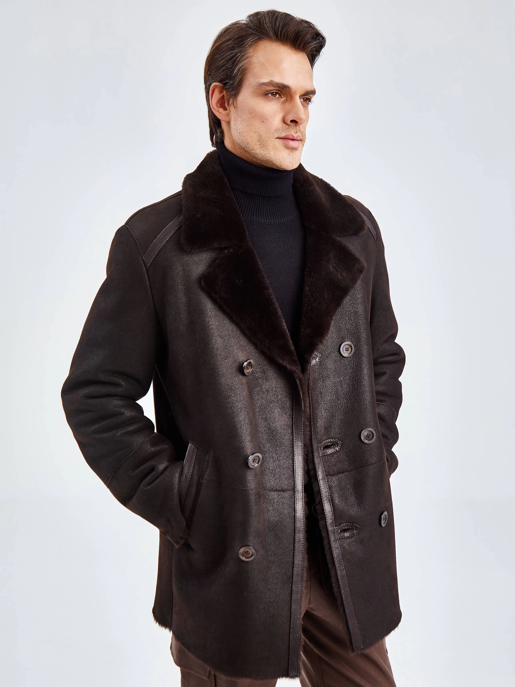 Дубленка двубортная классическая мужская 422, коричневая, размер 58, артикул 70500