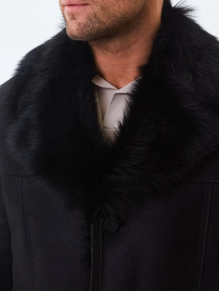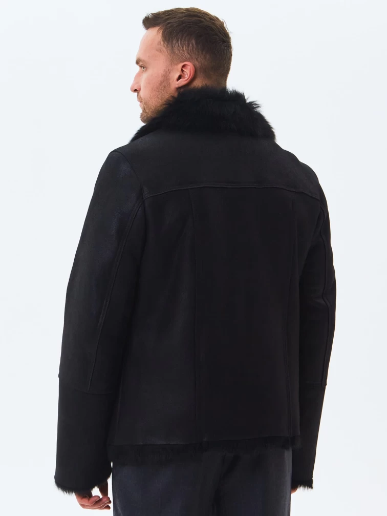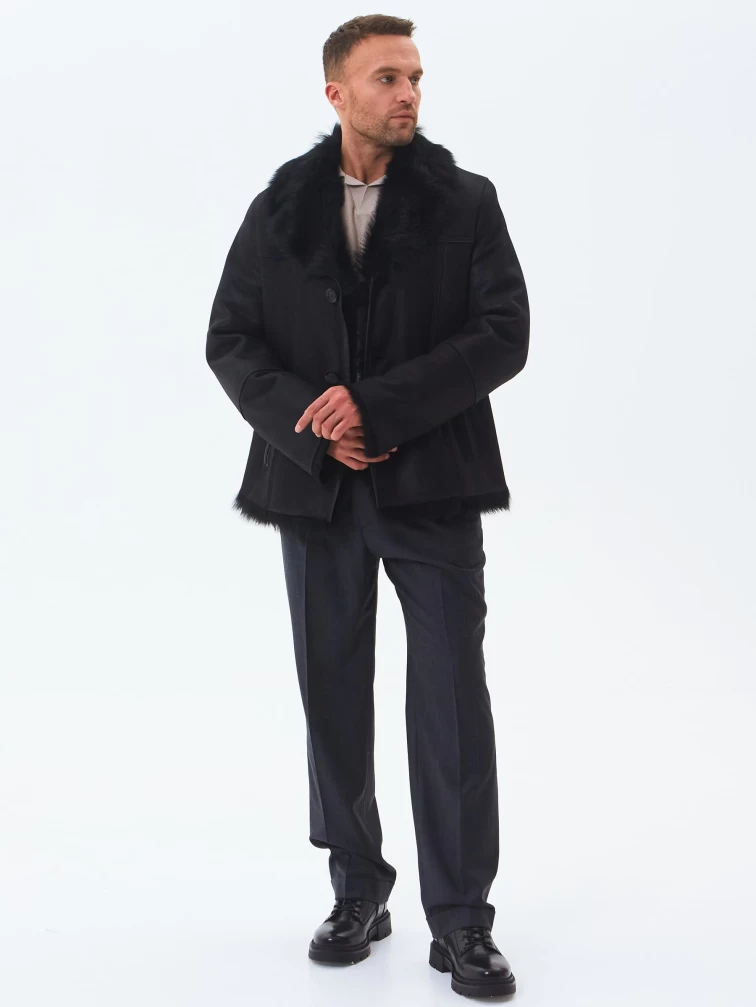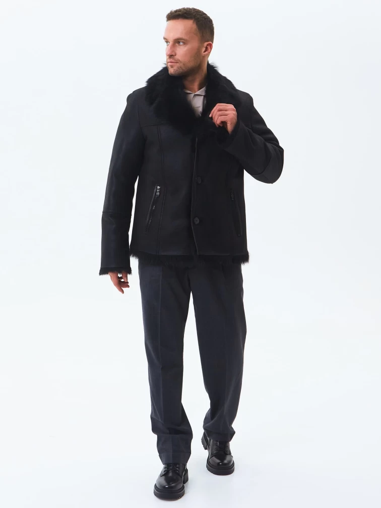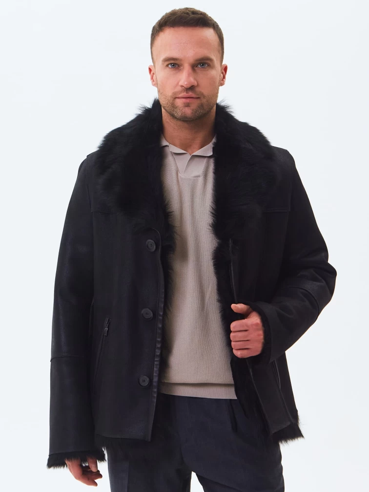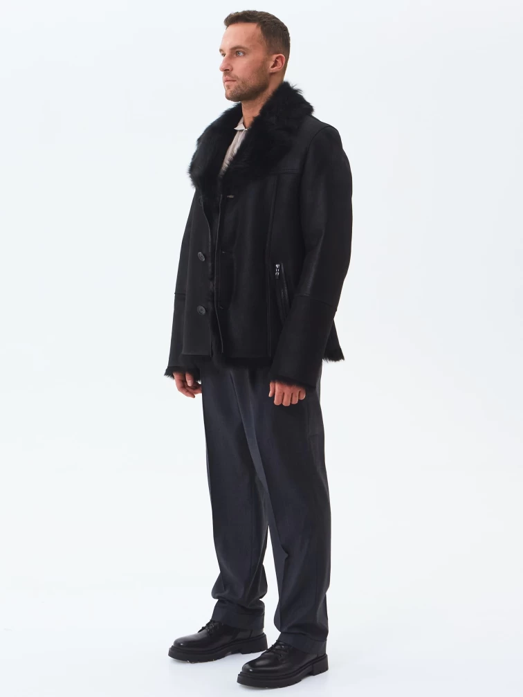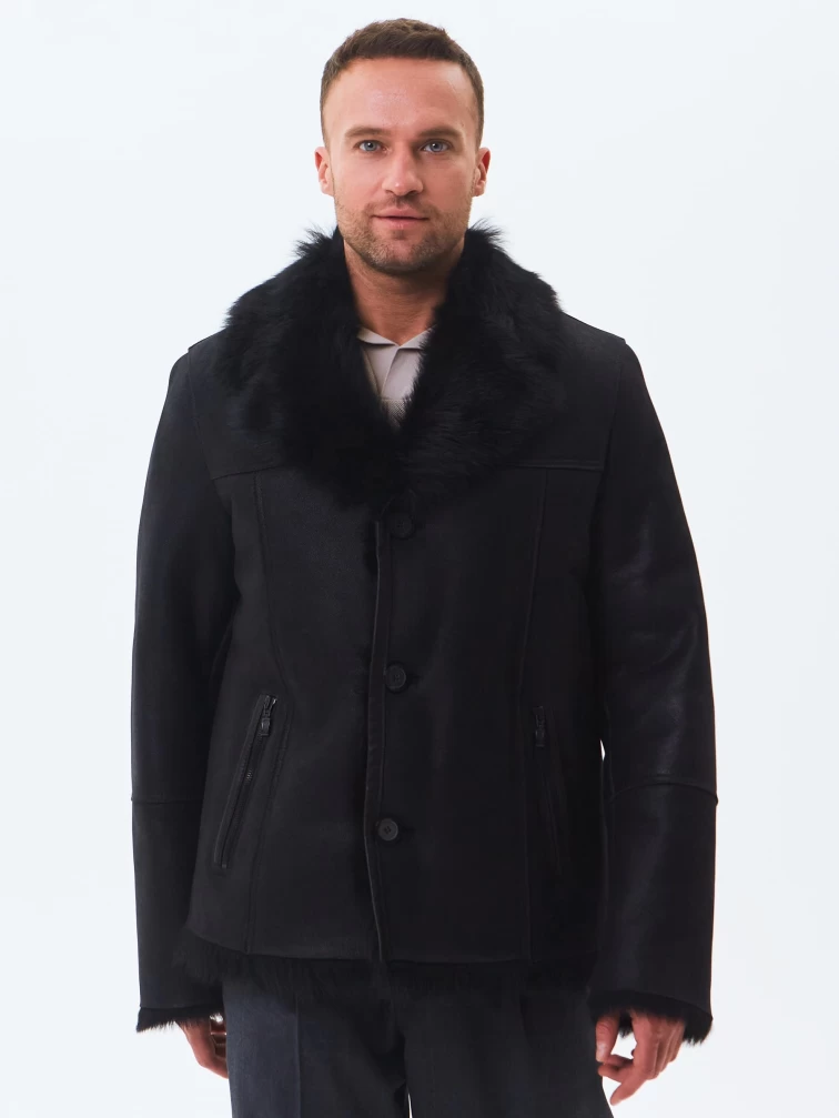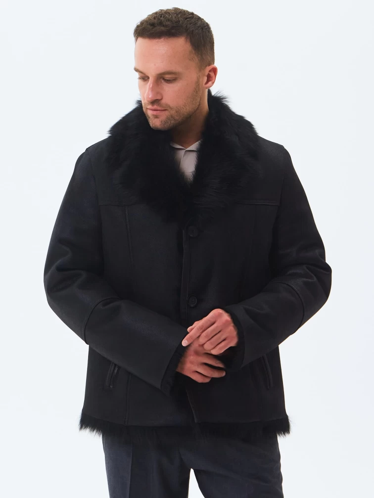 Короткая мужская дубленка из тосканы премиум класса Мишель, черная, размер 52, артикул 70370