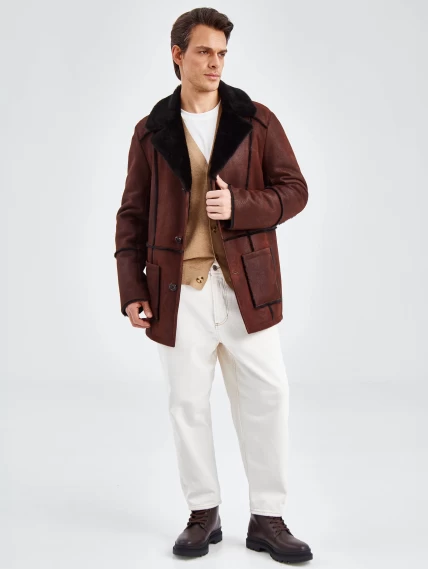 Дубленка пиджак с выпущенным мехом для мужчин премиум класса 434, виски, размер 54, артикул 71440