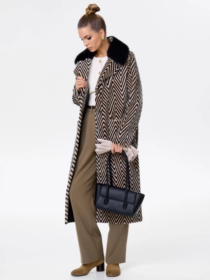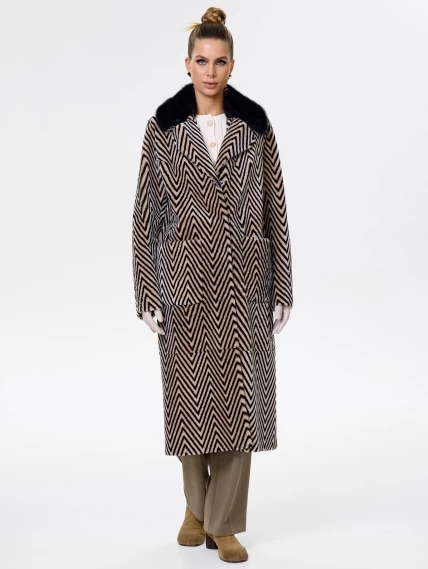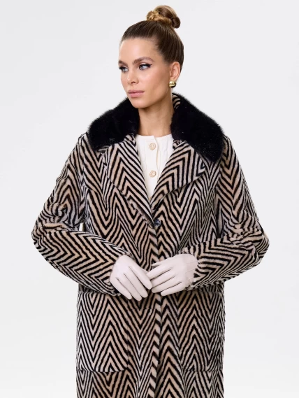 Двусторонняя женская дубленка с воротником из меха норки премиум класса 2003, бежевая, размер 48, артикул 62461
