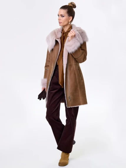 Женская дубленка косуха с капюшоном из тосканы 283, бежевая, размер 48, артикул 61832