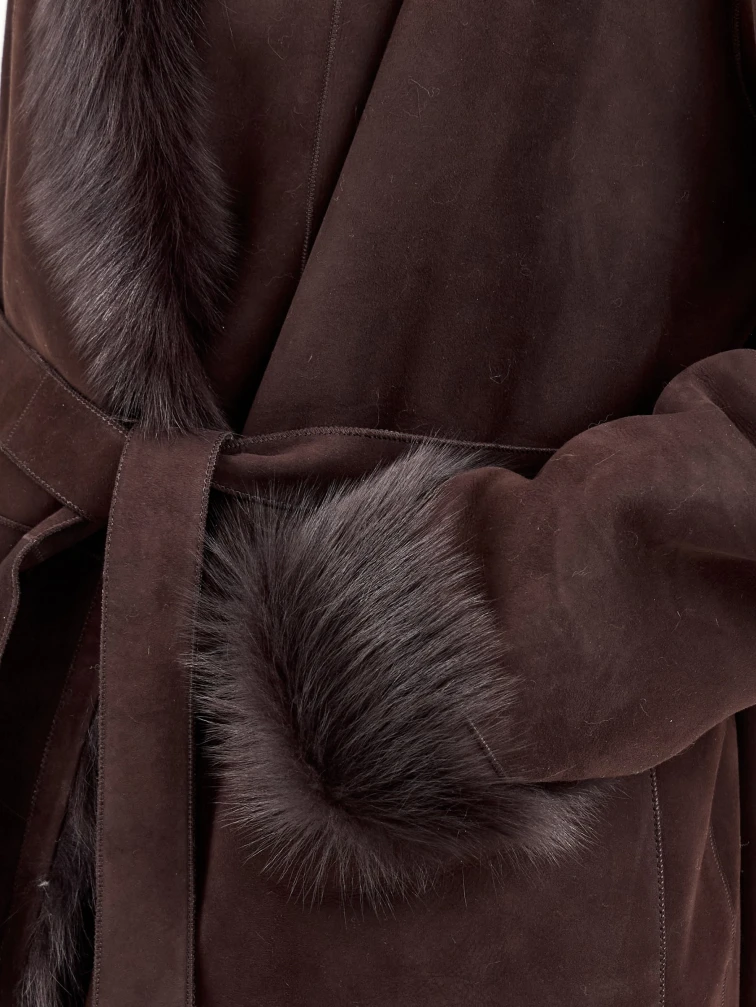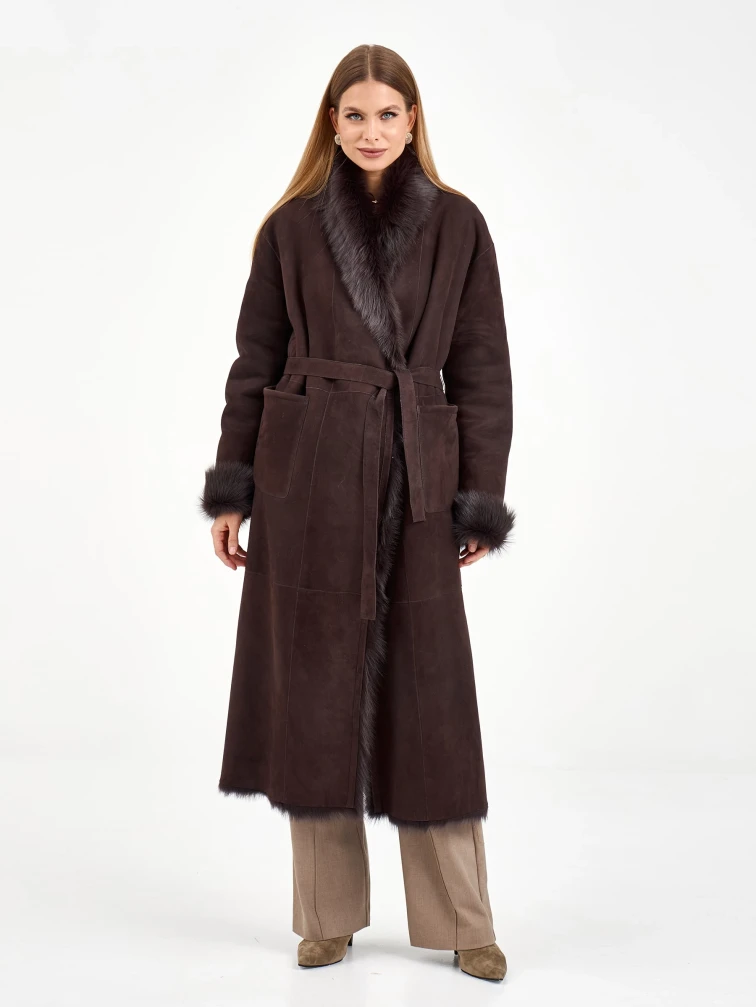 Товар коричневая женская дубленка из тосканы 2020, коричневая, размер 42, артикул 65090 выполнен из тосканская овчина с застежкой без застежки. Рассчитан на сезон: зима. Длина изделия 128 см, силуэт свободный.