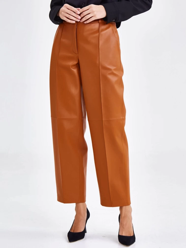 Коричневые модные женские кожаные брюки 08, размер 42, артикул 85912