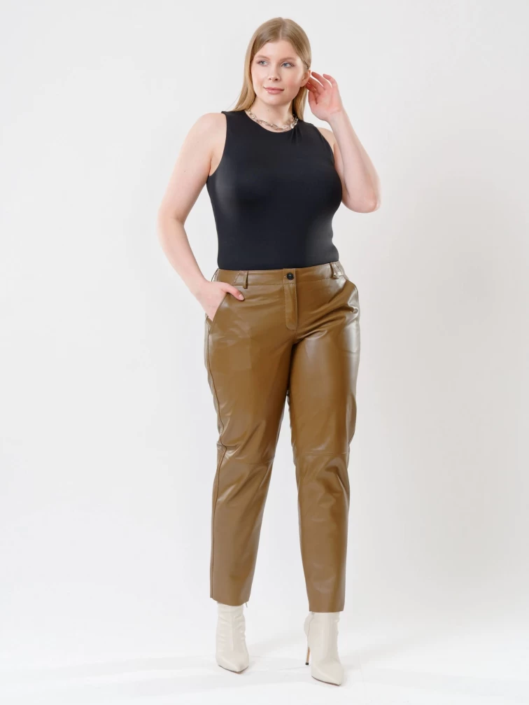 Коричневые зауженные женские кожаные брюки 03, размер 48, артикул 85522