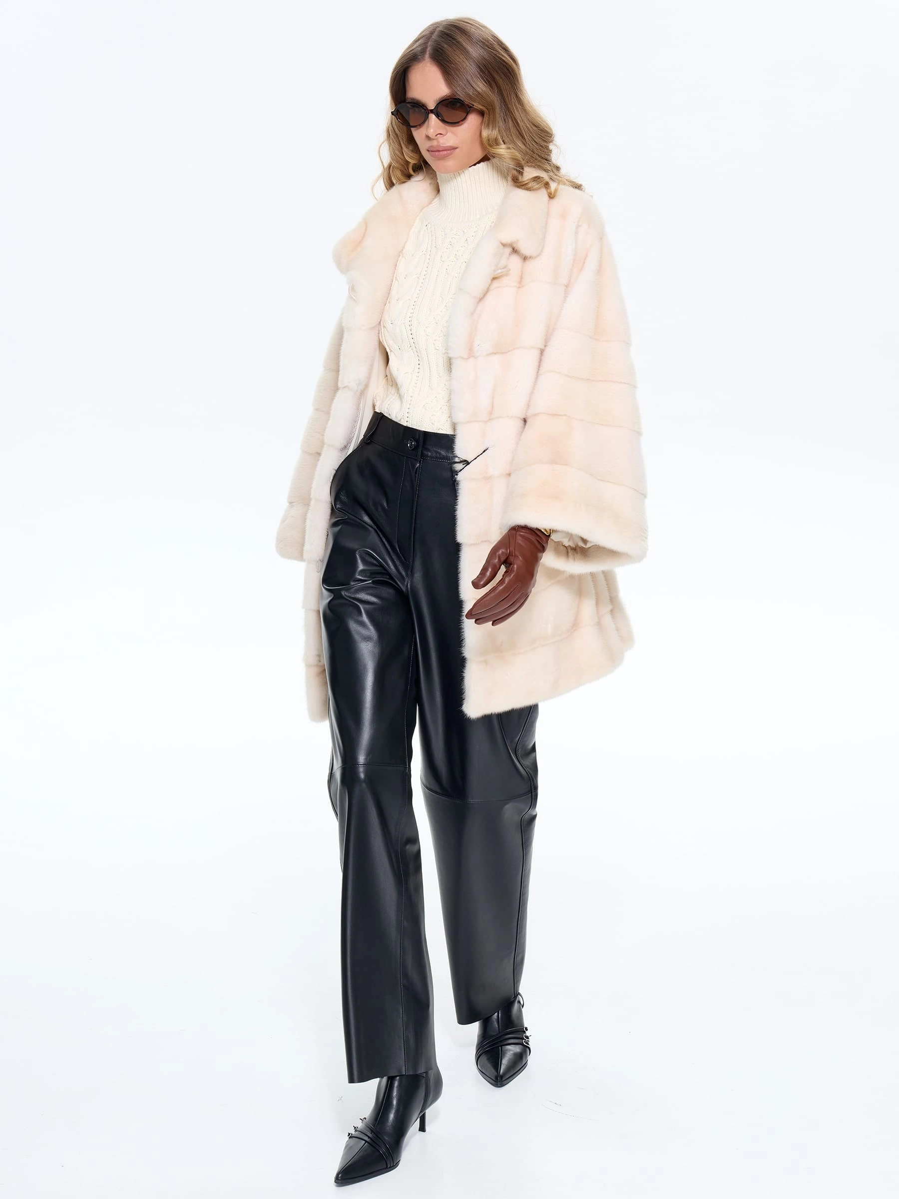 Товар короткая бежевая норковая женская шуба manakas 2524, размер 44, артикул 34460 выполнен из норка с застежкой клипсы. Рассчитан на сезон: зима. Длина изделия 78 см, силуэт прямой.
