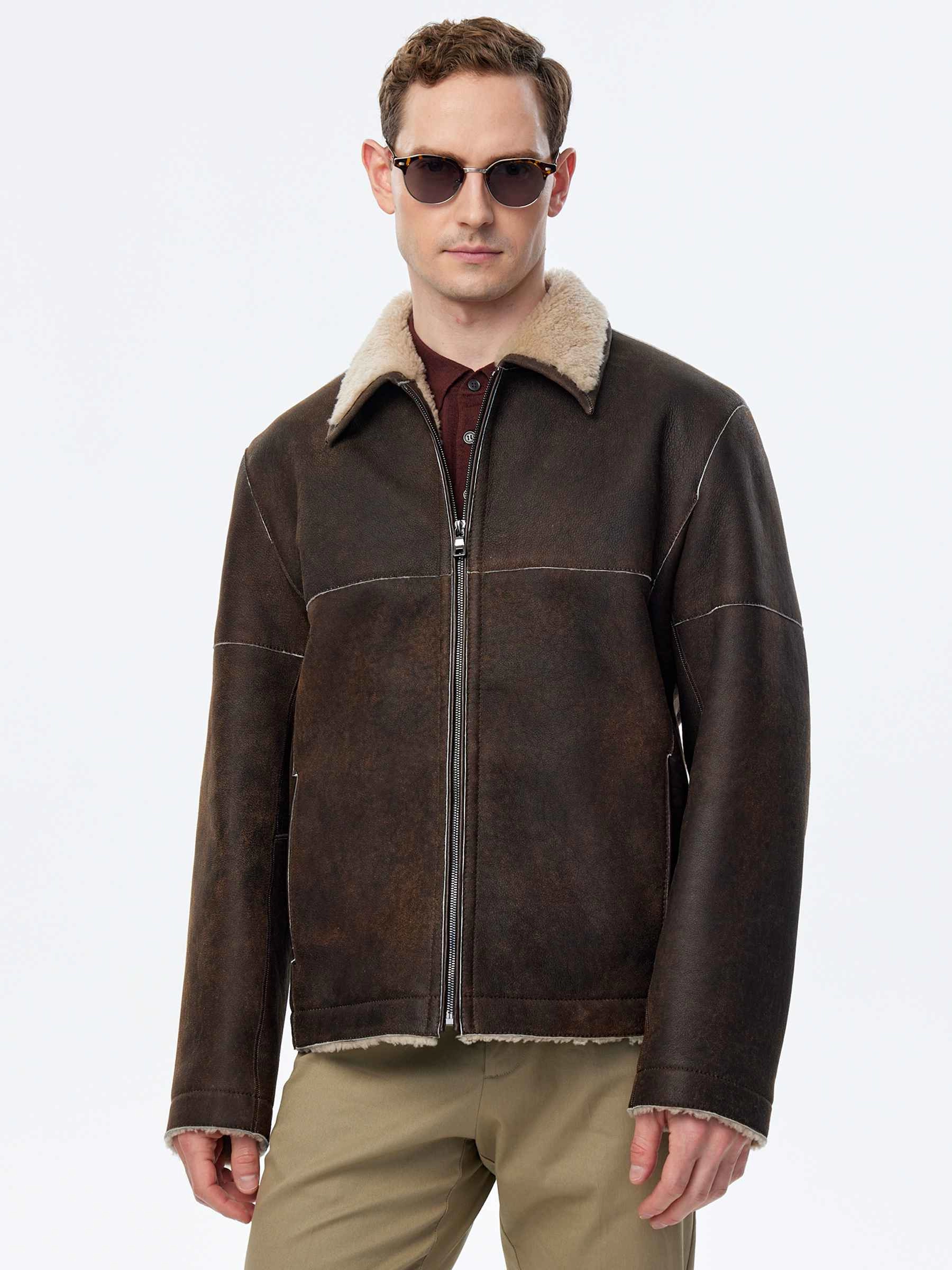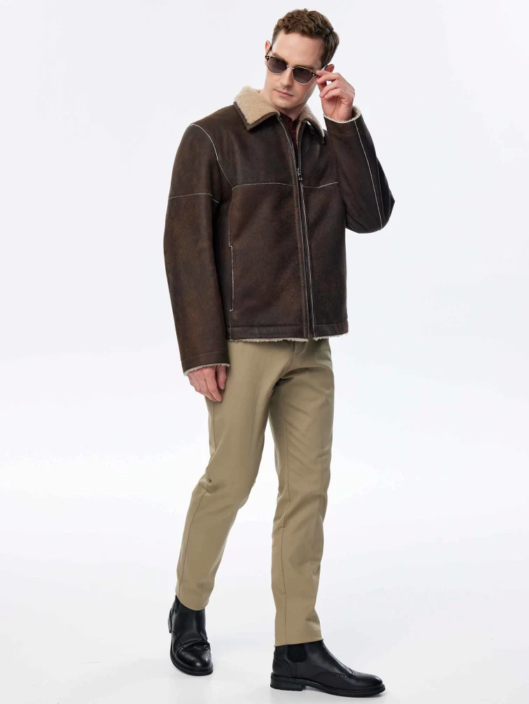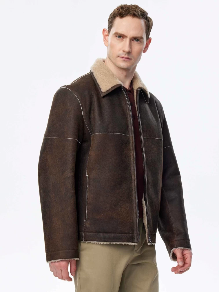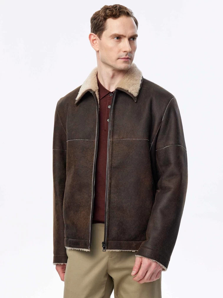 Товар короткая дубленка из овчины керли премиум класса для мужчин 140, коричневая, размер 44, артикул 71510 выполнен из овчина "керли" с застежкой молния. Рассчитан на сезон: осень-зима. Длина изделия 70 см, силуэт прямой.