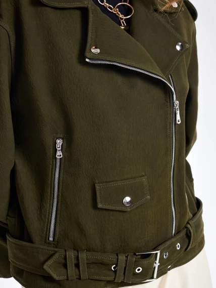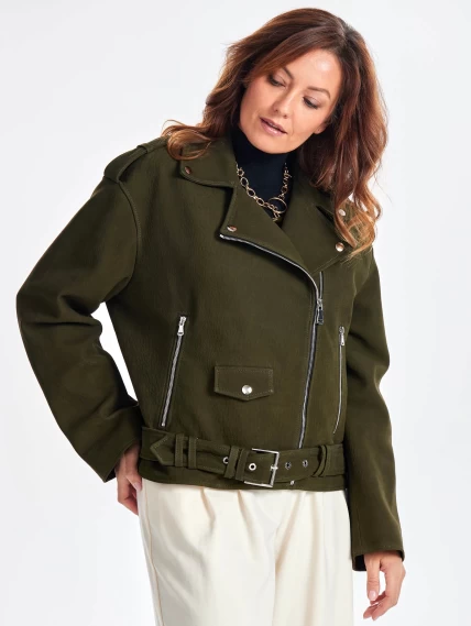Короткая кожаная куртка косуха с поясом для женщин премиум класса 3052, хаки, размер 44, артикул 23460