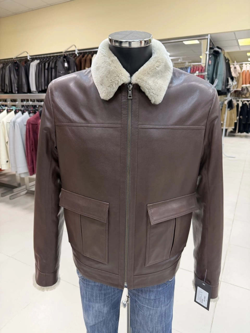 Стильная утепленная куртка длиной 67 см из гладкой натуральной кожи с роскошной подкладкой из мягчайшей овчины «Мерино»: прямой силуэт с отложным воротником, два накладных кармана с клапанами и два внутренних кармана создают безупречный баланс функциональности и минимализма. Застежка на надежную молнию обеспечивает максимальный комфорт без лишних деталей. Совет стилиста: носите с джинсами-карго и грубыми ботинками для повседневного образа или с классическими брюками и водолазкой для смарт-кэжуал — эта куртка согреет в любой мороз и подчеркнет ваш безупречный вкус.