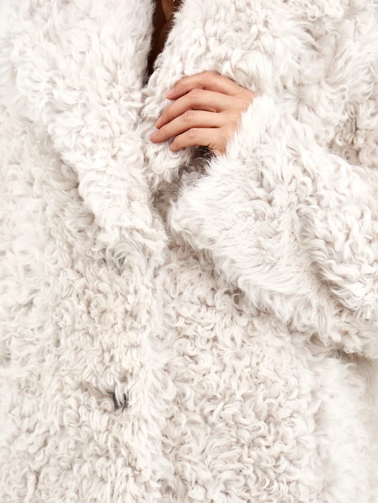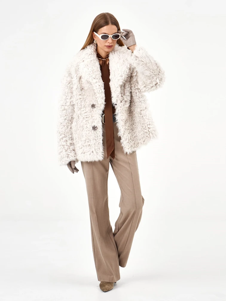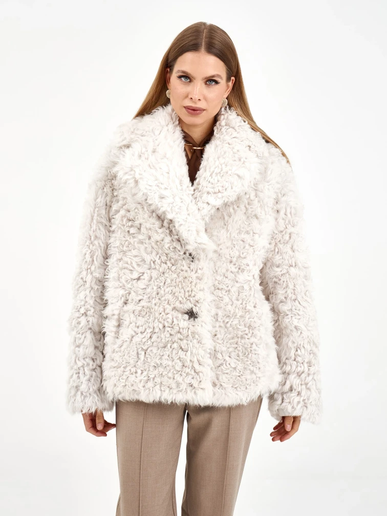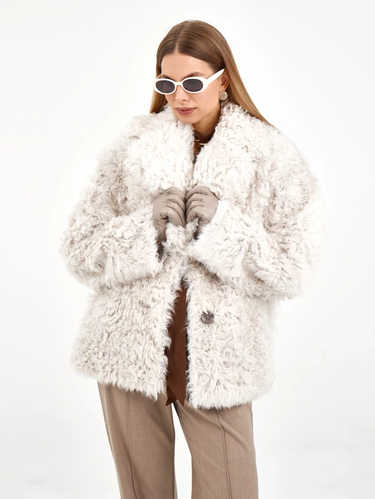 Товар короткая женская дубленка из тиградо 2081, белая, размер 42, артикул 65040 выполнен из овчина "тиградо" с застежкой пуговицы. Рассчитан на сезон: зима. Длина изделия 70 см, силуэт свободный.