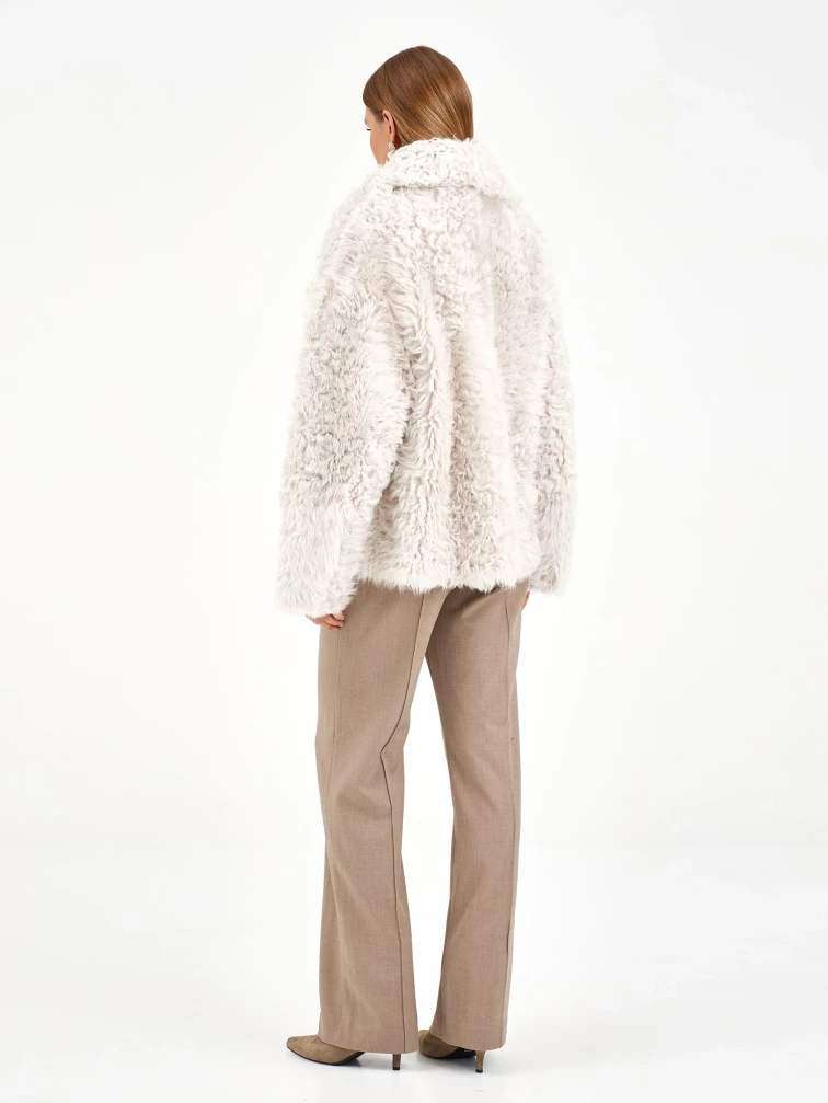 Короткая женская дубленка из тиградо 2081, белая, размер 42, артикул 65040
