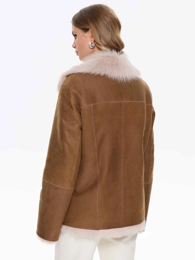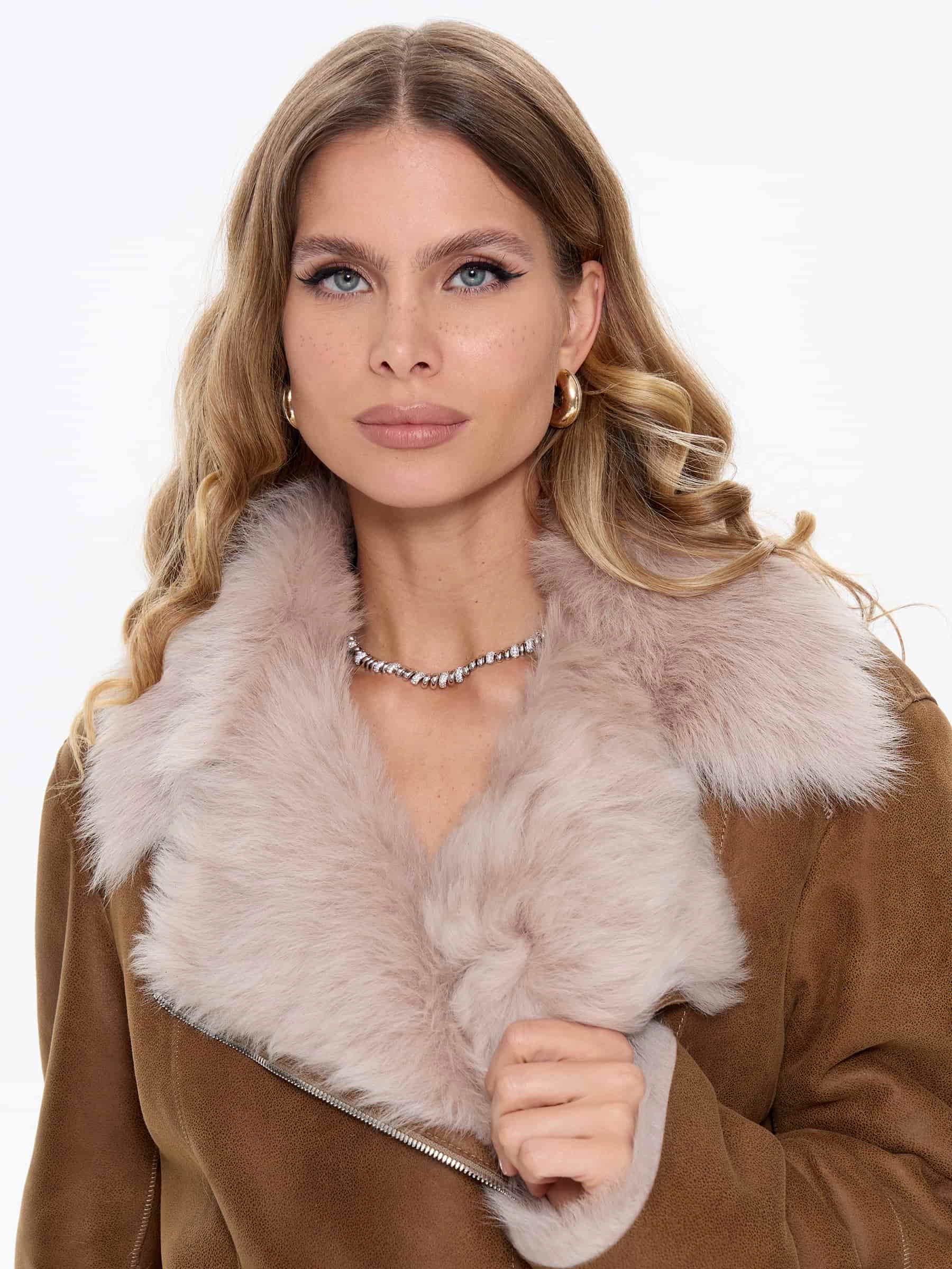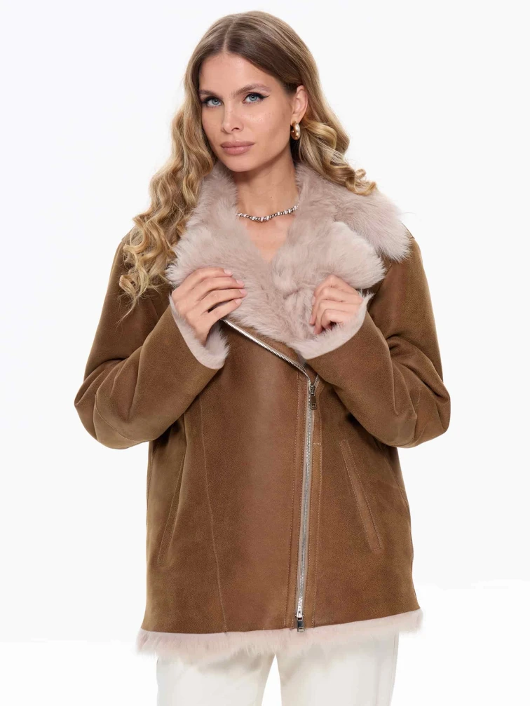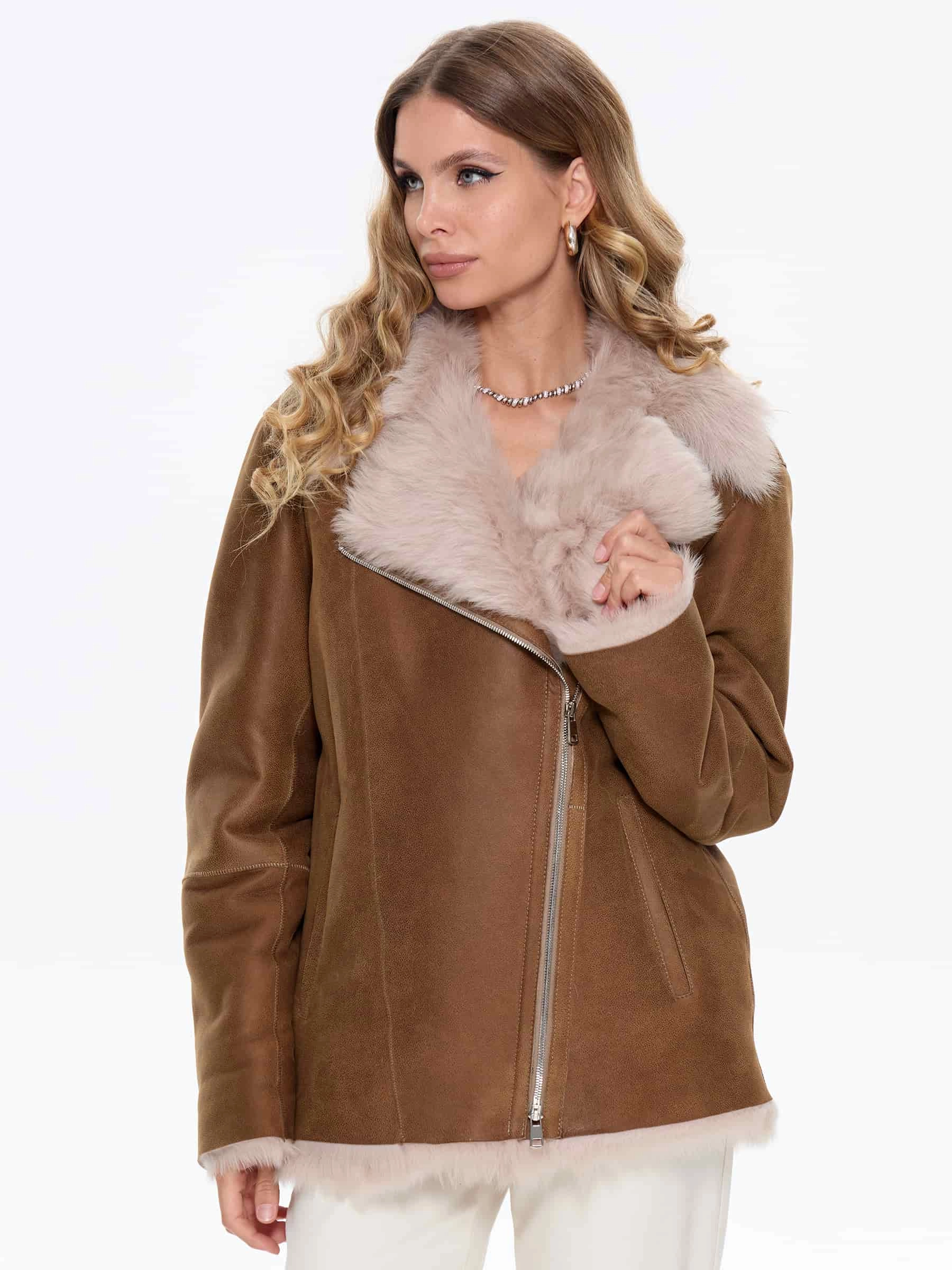Дублёнка-легенда. Для пошива косухи использовали отборные шкуры овец с шелковистым ворсом. Спортивный крой, роскошь натуральной тосканской овчины и полуприлегающий силуэт создают образ уверенной современницы. Укороченная длина акцентирует талию, не стесняет движений и идеальна для вождения. Два боковых кармана, асимметричная застёжка-молния и английский воротник создают диалог между бунтарством и аристократизмом. Доступна в благородном бежевом оттенке. Великолепно сохраняет тепло в морозную погоду.
