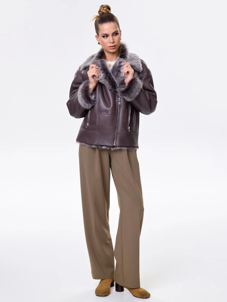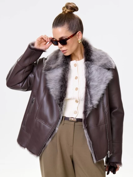 Короткая женская дубленка из тосканы премиум класса 2049, коричневая, размер 48, артикул 64200