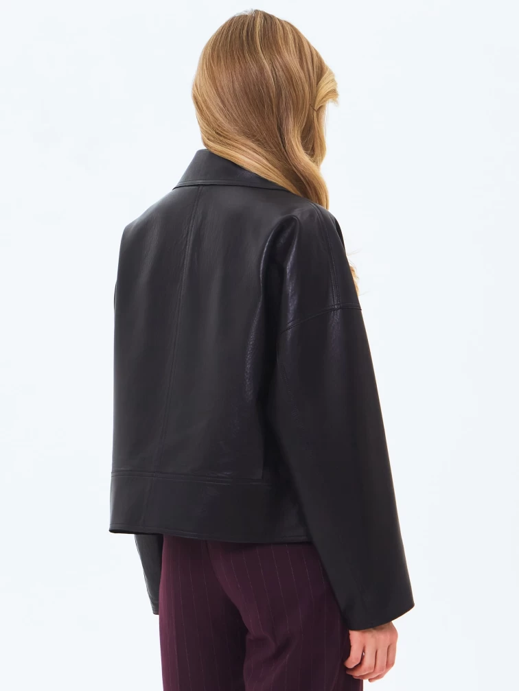 Товар короткая женская кожаная куртка косуха премиум класса 3085, черная, размер 46, артикул 24610 выполнен из натуральной кожи с застежкой молния. Рассчитан на сезон: весна-лето. Длина изделия 58 см, силуэт прямой.