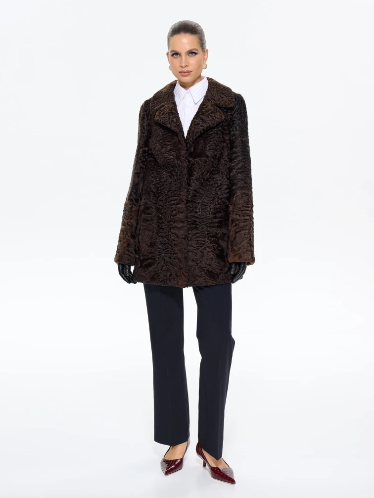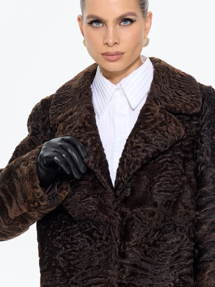 Короткая женская шуба из меха каракульчи Алиса, коричневая, размер 48, артикул 65560