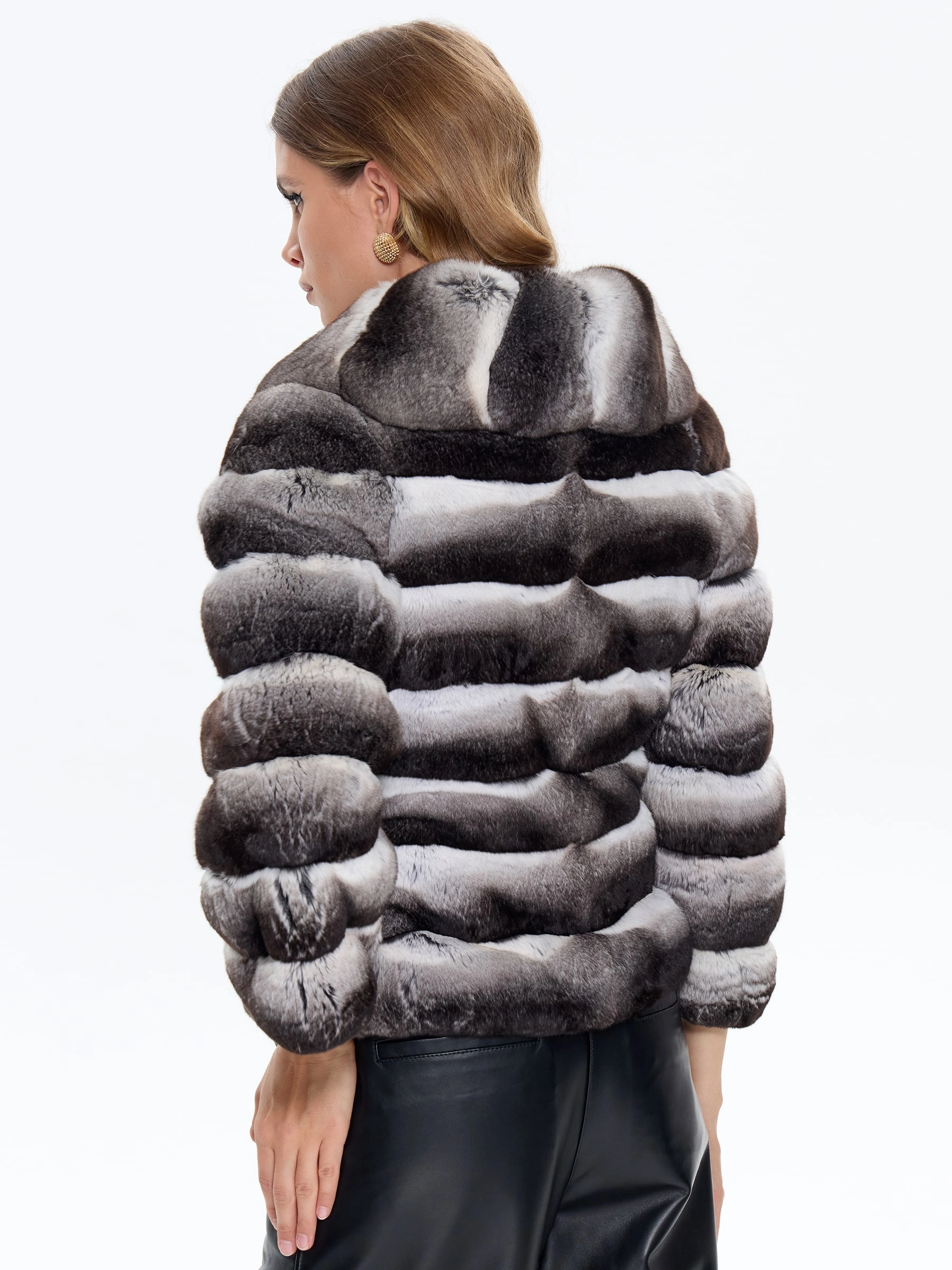 Короткая женская шуба из меха шиншилы MANAKAS QWN, черно-белая, размер 42, артикул 34310