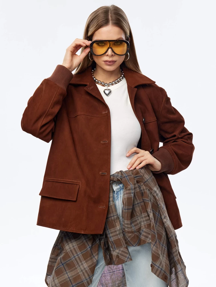 Товар кожаная куртка бомбер для женщин премиум класса 3065, виски, размер 44, артикул 24050 выполнен из натуральной кожи с застежкой пуговицы. Рассчитан на сезон: весна-лето. Длина изделия 70 см, силуэт прямой.