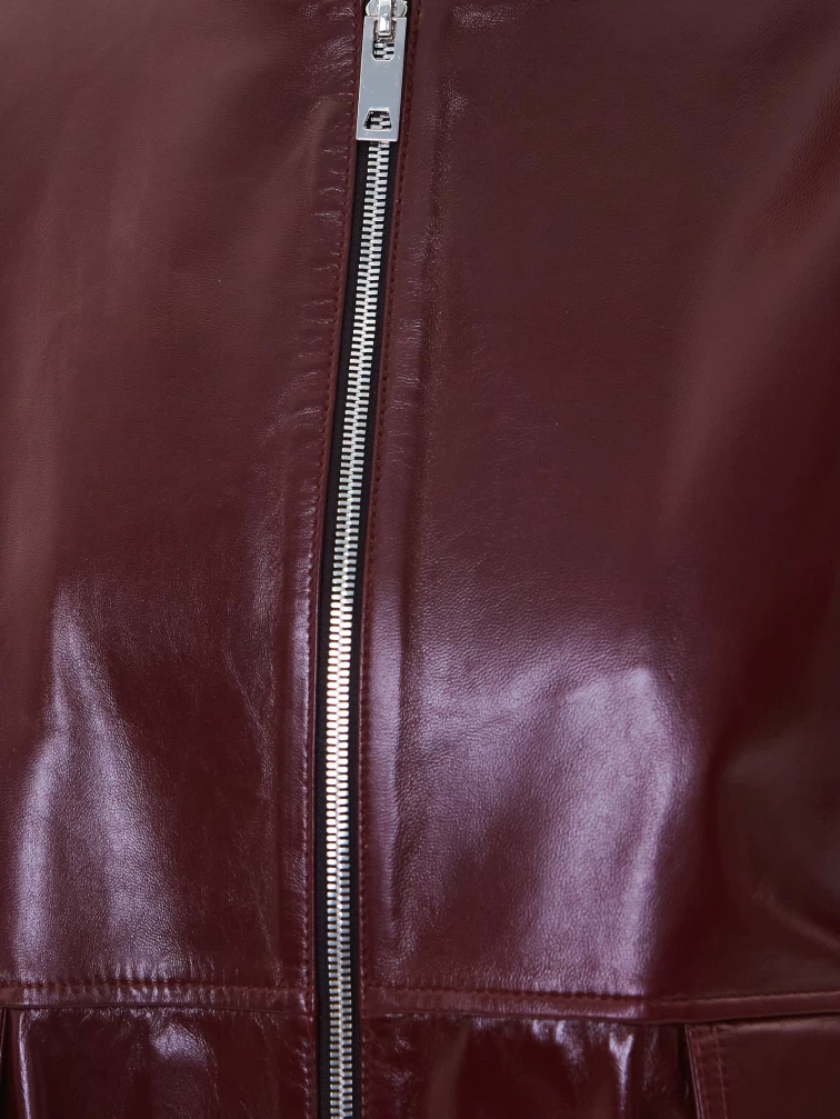 Товар кожаная куртка бомбер премиум класса для женщин 3094, бордовая, размер 50, артикул 24350 выполнен из натуральной кожи с застежкой молния. Рассчитан на сезон: весна-лето. Длина изделия 63 см, силуэт свободный.