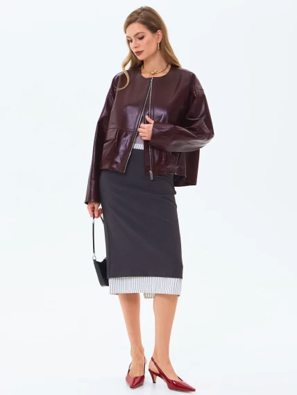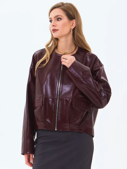Кожаная куртка бомбер премиум класса для женщин 3094, бордовая, размер 50, артикул 24350