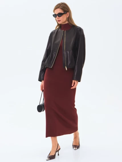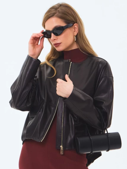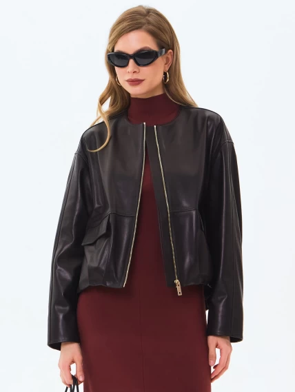 Кожаная куртка бомбер премиум класса для женщин 3094, черная, размер 46, артикул 24350