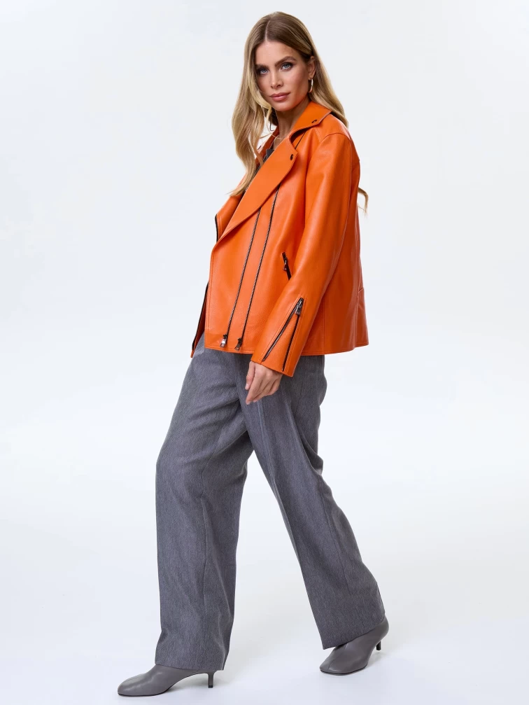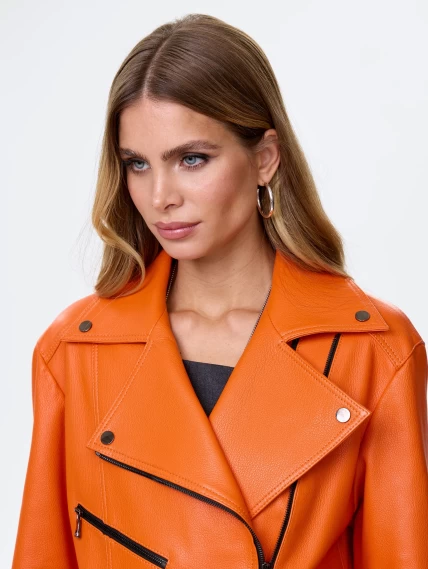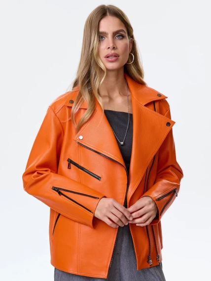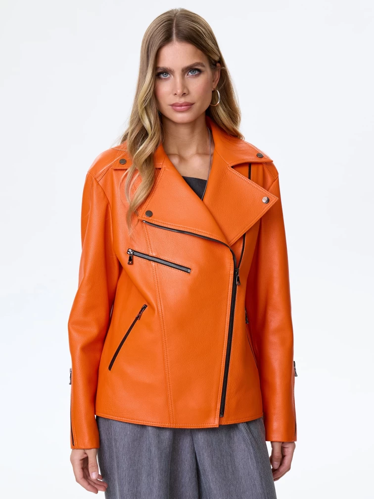 Товар кожаная куртка косуха премиум класса для женщин 3047, оранжевая, размер 52, артикул 24290 выполнен из натуральной кожи с застежкой молния. Рассчитан на сезон: весна-осень. Длина изделия 65 см, силуэт свободный.