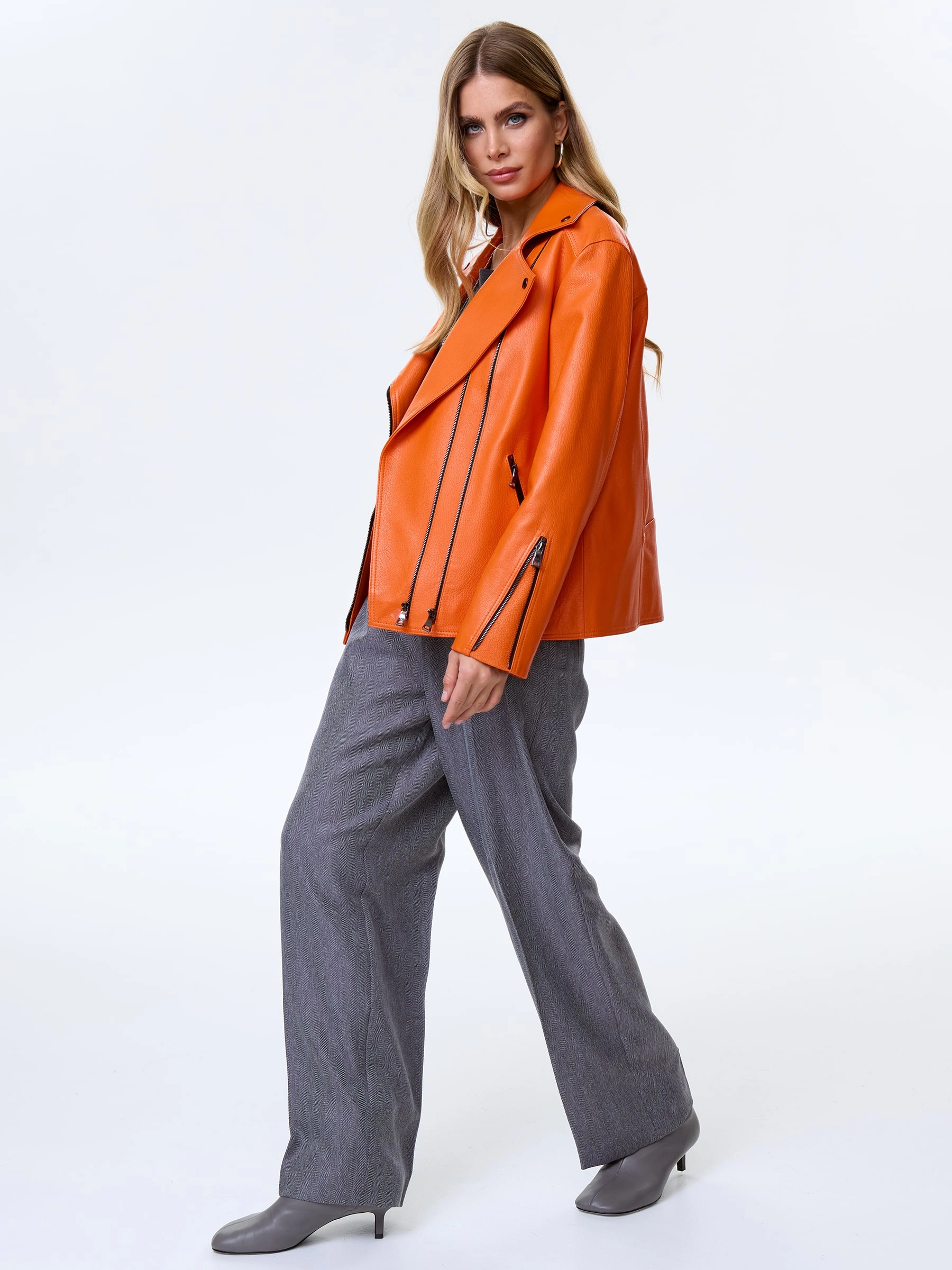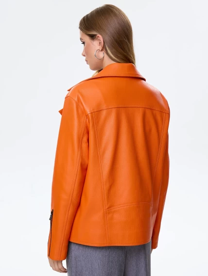 Кожаная куртка косуха премиум класса для женщин 3047, оранжевая, размер 52, артикул 24290