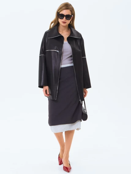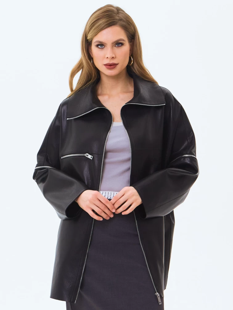 Товар кожаная куртка премиум класса для женщин 3088, черная, размер 46, артикул 24330 выполнен из натуральной кожи с застежкой молния. Рассчитан на сезон: весна-осень. Длина изделия 76 см, силуэт свободный.