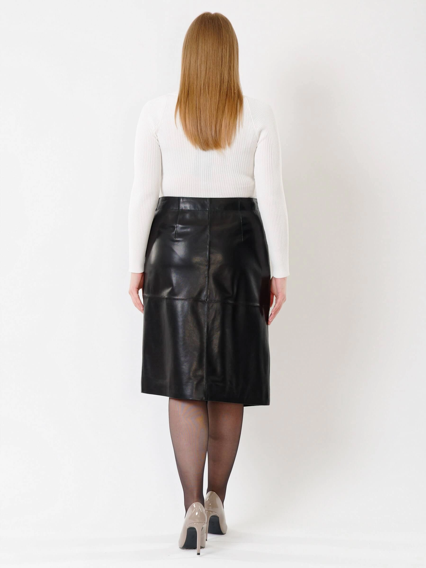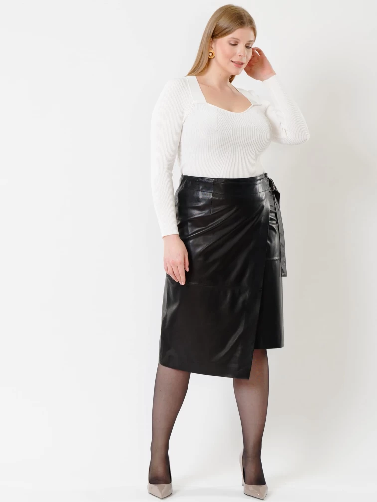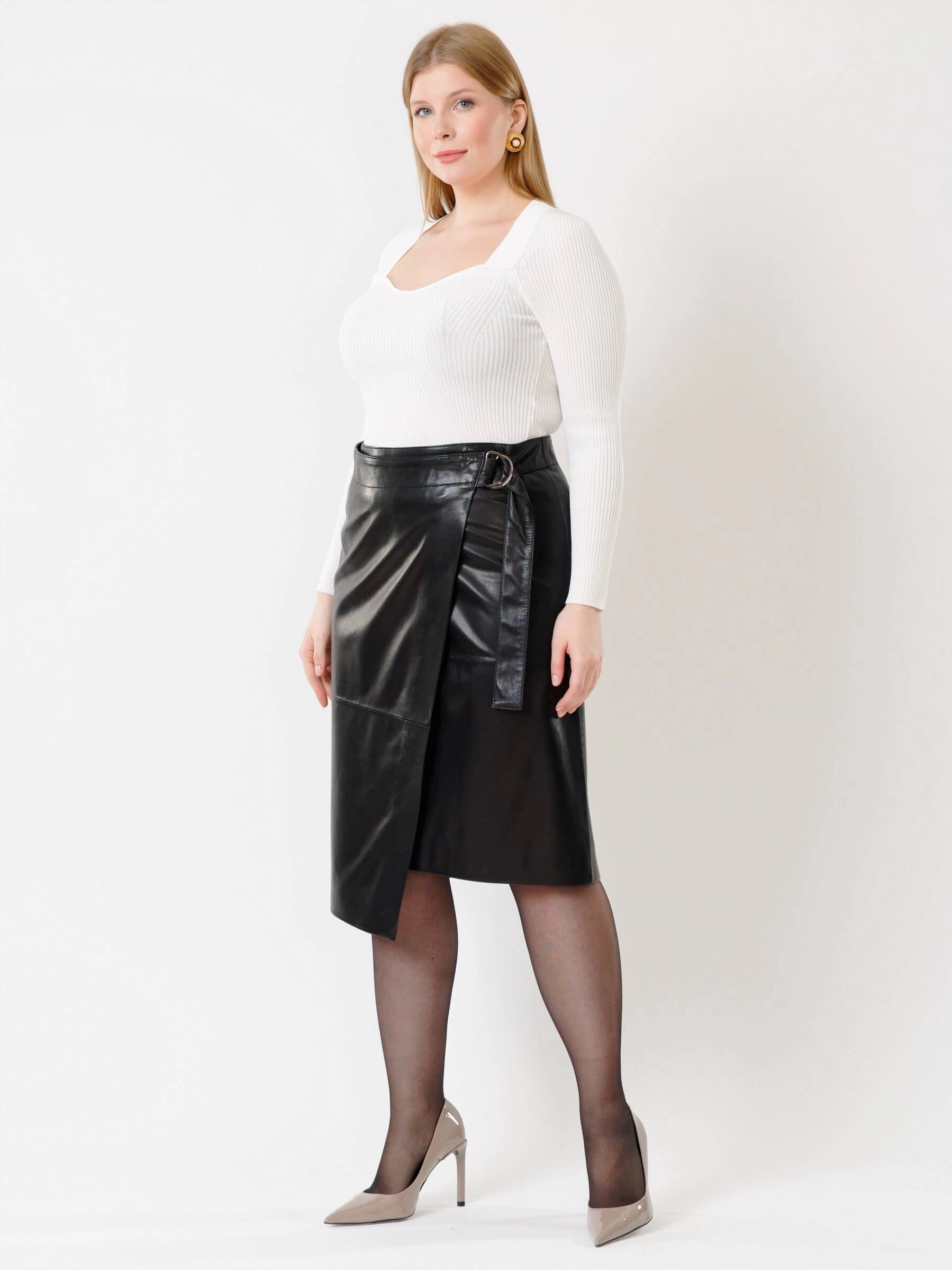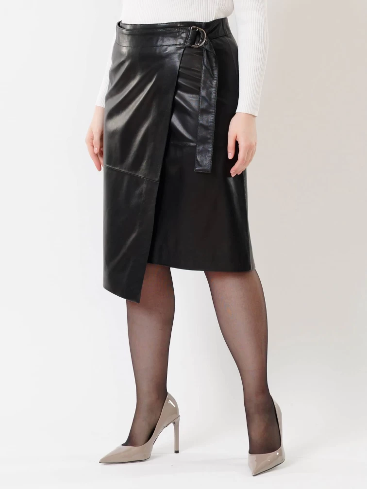 Товар кожаная юбка миди с запахом 07, черная, размер 44, артикул 85432 выполнен из натуральной кожи с застежкой молния. Рассчитан на сезон: демисезон. Длина изделия 65 см, силуэт прямой.