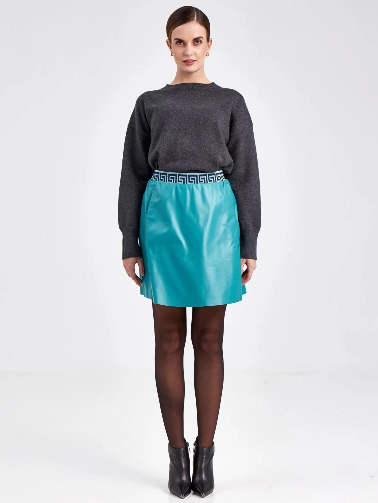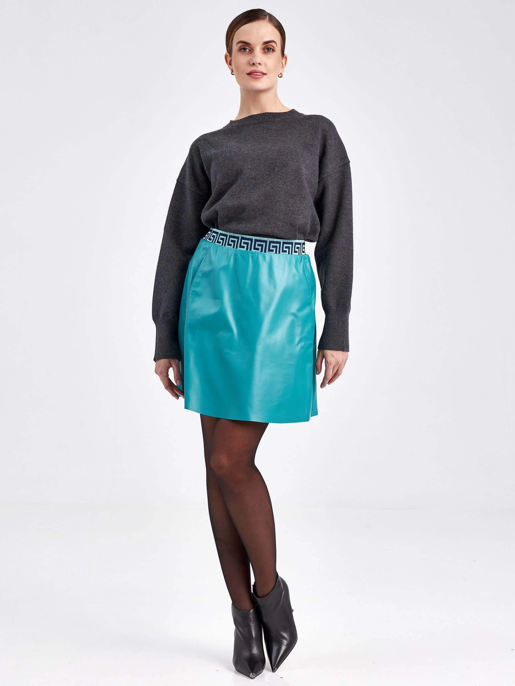 Кожаная юбка мини из натуральной кожи 05, бирюзовая, размер 46, артикул 85870