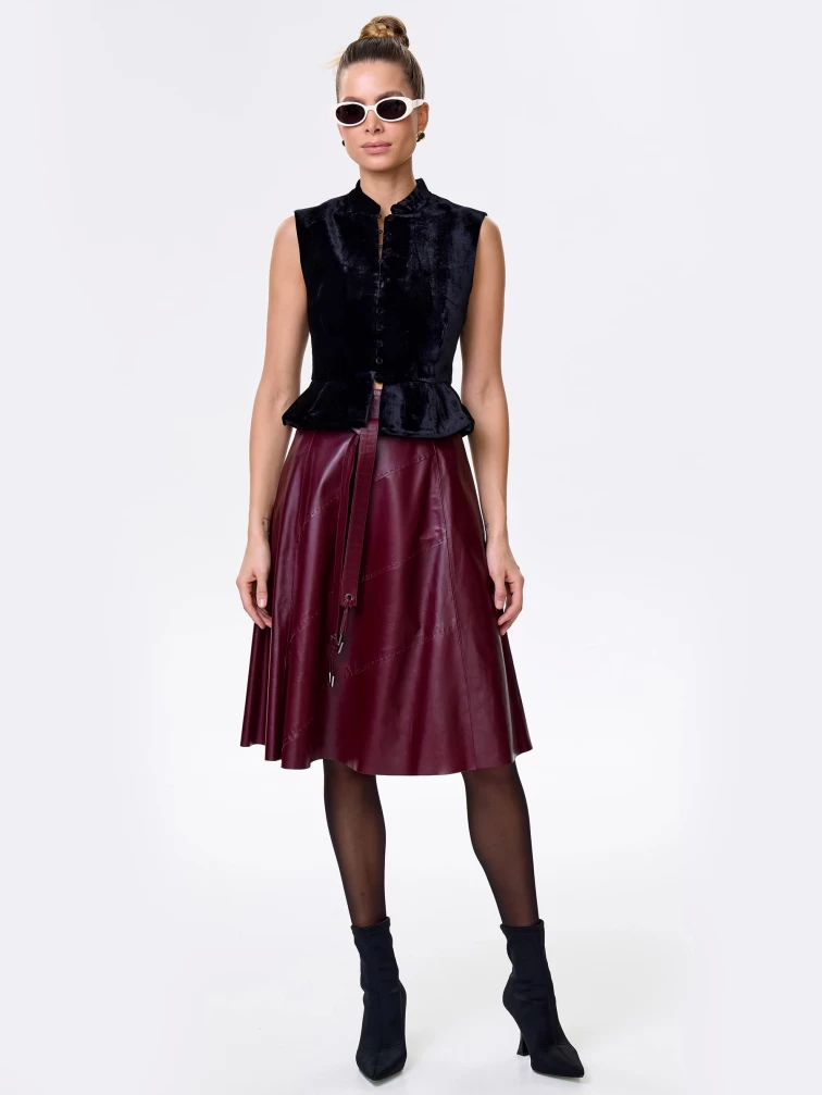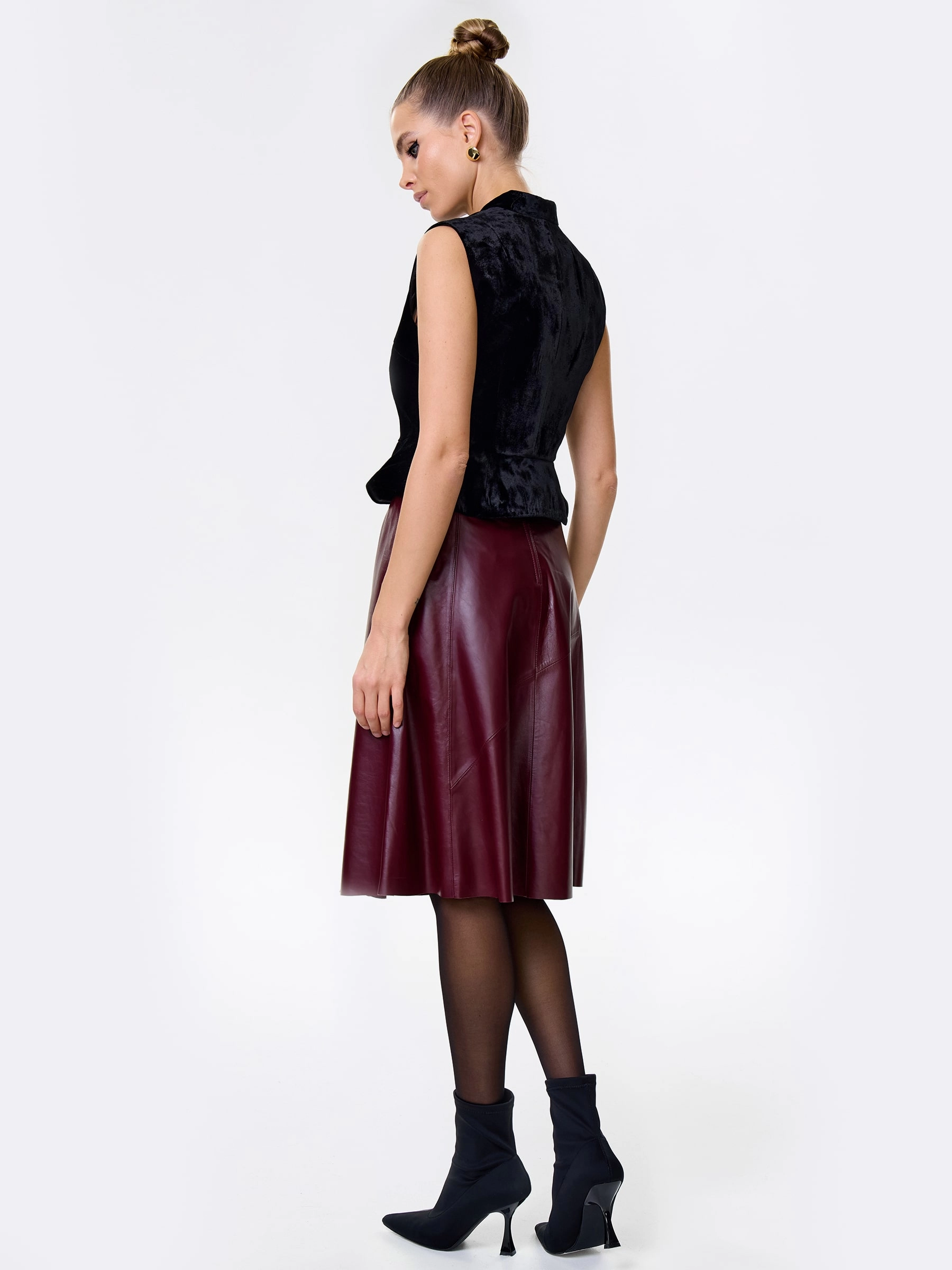 Товар кожаная расклешенная юбка из натуральной кожи 01рс, бордовая, размер 44, артикул 85180 выполнен из натуральной кожи с застежкой молния. Рассчитан на сезон: демисезон. Длина изделия 70 см, силуэт расклешенный.